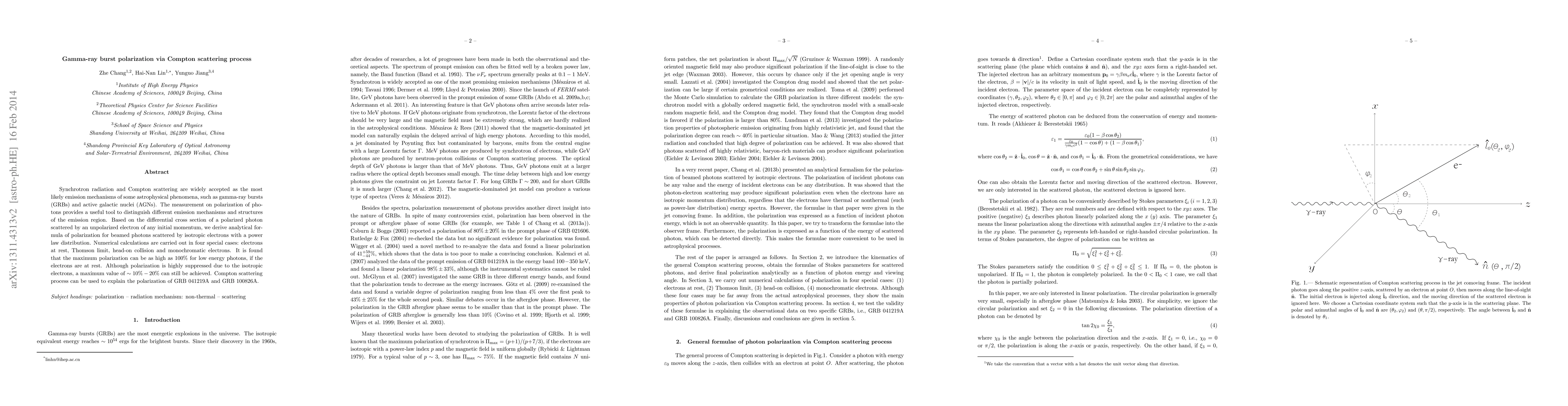 This paper derives an analytical formula for the polarization of gamma-ray photons via Compton scattering, finding that maximum polarization can reach 100% for low-energy photons when electrons are at rest, and around 10%-20% for isotropic electrons. The results are applied to explain the polarization observed in GRB 041219A and GRB 100826A.