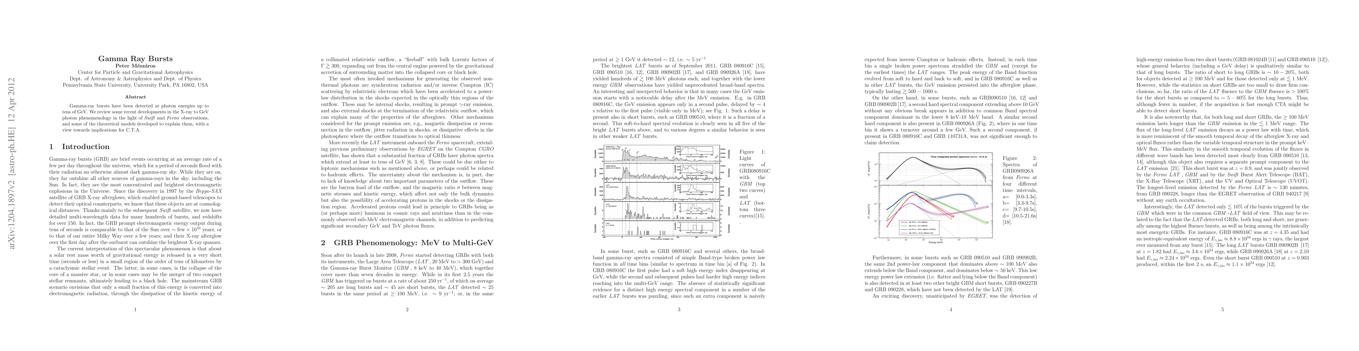 This paper reviews recent advancements in understanding gamma-ray bursts, focusing on the phenomenology from X-ray to GeV photon energies, supported by observations from Swift and Fermi satellites, and discusses theoretical models to explain these phenomena, with implications for cosmic-ray astronomy.