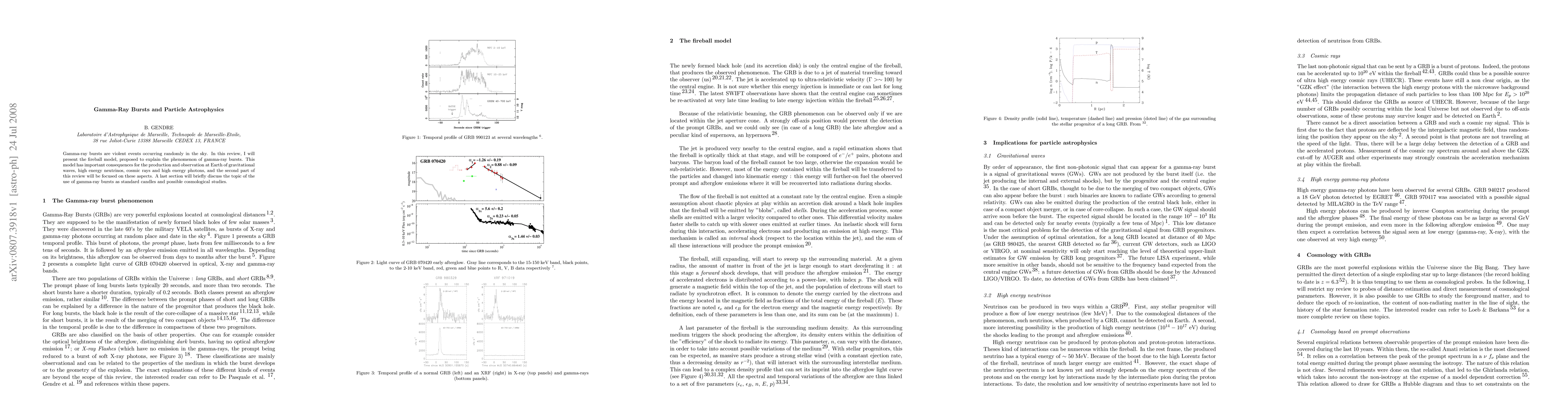 This paper reviews the fireball model explaining gamma-ray bursts, highlighting its implications for gravitational waves, high energy neutrinos, cosmic rays, and photons. It also discusses gamma-ray bursts' potential as standard candles for cosmological studies.