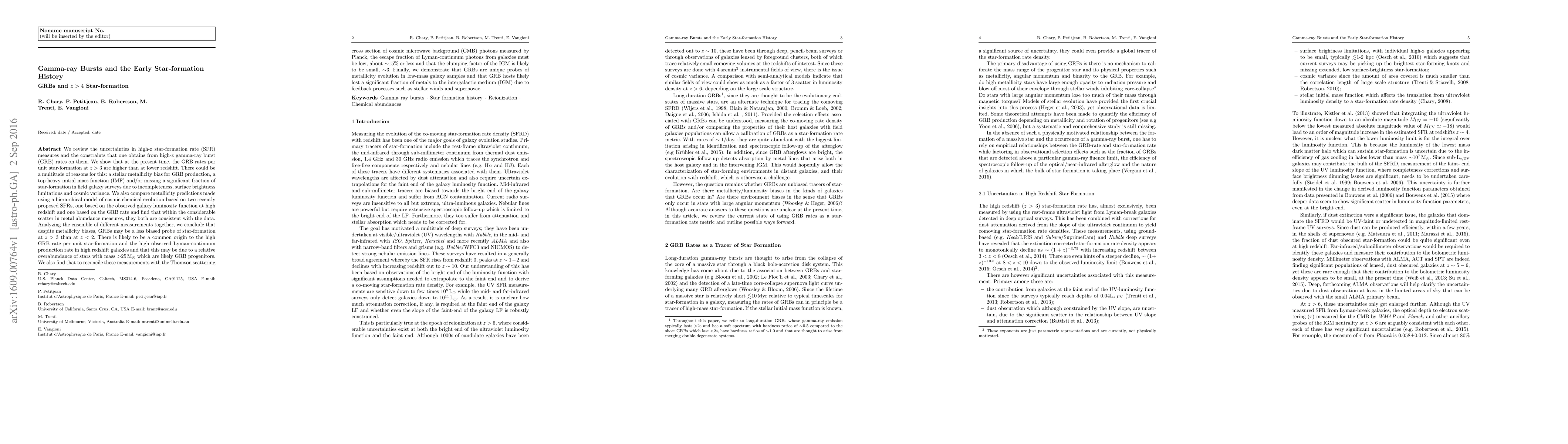 We review the uncertainties in high-z star-formation rate (SFR) measures and the constraints that one obtains from high-z gamma-ray burst (GRB) rates on them. We show that at the present time, the GRB rates per unit star-formation at z>3 are higher than at lower redshift. We also compare metallicity predictions made using a hierarchical model of cosmic chemical evolution based on two recently proposed SFRs, one based on the observed galaxy luminosity function at high redshift and one based on the GRB rate and find that within the considerable scatter in metal abundance measures, they both are consistent with the data. Analyzing the ensemble of different measurements together, we conclude that despite metallicity biases, GRBs may be a less biased probe of star-formation at z>3 than at z<2. There is likely to be a common origin to the high GRB rate per unit star-formation and the high observed Lyman-continuum production rate in high redshift galaxies and that this may be due to a relative overabundance of stars with mass $>$25Msun which are likely GRB progenitors. We also find that to reconcile these measurements with the Thomson scattering cross section of cosmic microwave background (CMB) photons measured by Planck, the escape fraction of Lyman-continuum photons from galaxies must be low, about 15 percent or less and that the clumping factor of the IGM is likely to be small, about 3. Finally, we demonstrate that GRBs are unique probes of metallicity evolution in low-mass galaxy samples and that GRB hosts likely lost a significant fraction of metals to the intergalactic medium (IGM) due to feedback processes such as stellar winds and supernovae.