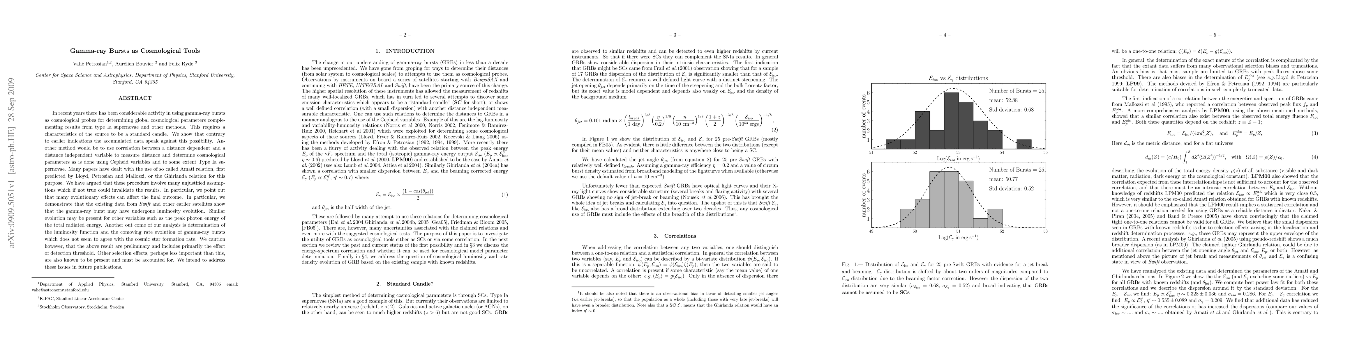 In recent years there has been considerable activity in using gamma-ray bursts as cosmological probes for determining global cosmological parameters complementing results from type Ia supernovae and other methods. This requires a characteristics of the source to be a standard candle. We show that contrary to earlier indications the accumulated data speak against this possibility. Another method would be to use correlation between a distance dependent and a distance independent variable to measure distance and determine cosmological parameters as is done using Cepheid variables and to some extent Type Ia supernovae. Many papers have dealt with the use of so called Amati relation, first predicted by Lloyd, Petrosian and Mallozzi, or the Ghirlanda relation for this purpose. We have argued that these procedure involve many unjustified assumptions which if not true could invalidate the results. In particular, we point out that many evolutionary effects can affect the final outcome. In particular, we demonstrate that the existing data from Swift and other earlier satellites show that the gamma-ray burst may have undergone luminosity evolution. Similar evolution may be present for other variables such as the peak photon energy of the total radiated energy. Another out come of our analysis is determination of the luminosity function and the comoving rate evolution of gamma-ray bursts which does not seem to agree with the cosmic star formation rate. We caution however, that the above result are preliminary and includes primarily the effect of detection threshold. Other selection effects, perhaps less important than this, are also known to be present and must be accounted for. We intend to address these issues in future publications.