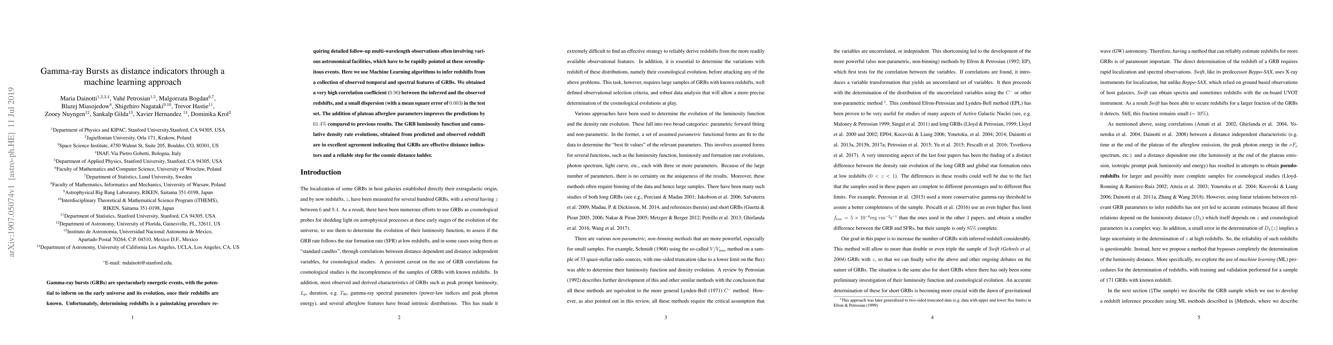 Researchers used machine learning to accurately predict gamma-ray burst redshifts, achieving a correlation coefficient of 0.96 and improving previous results by 61%. This method suggests that GRBs can be effective distance indicators in the cosmic distance ladder.
