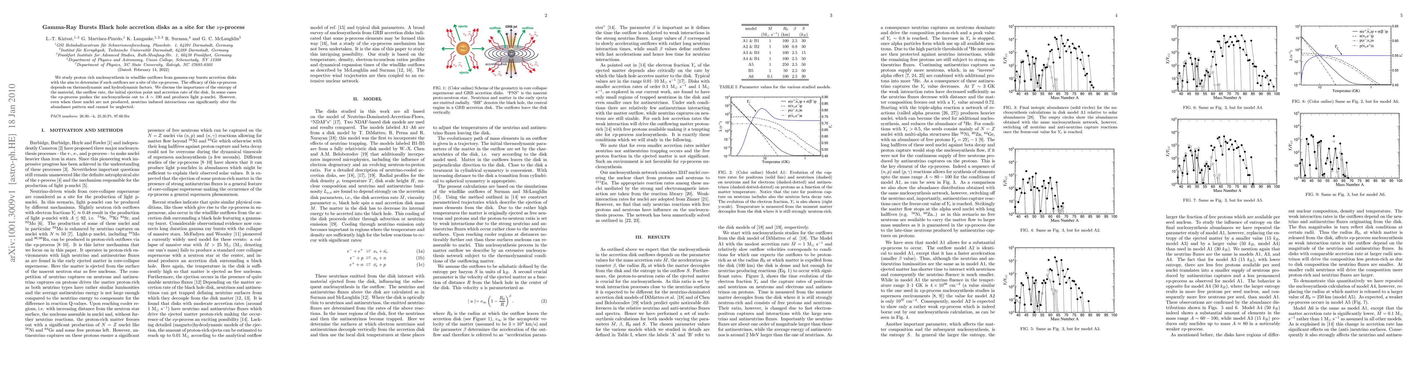 We study proton rich nucleosynthesis in windlike outflows from gamma-ray bursts accretion disks with the aim to determine if such outflows are a site of the vp-process. The efficacy of this vp-process depends on thermodynamic and hydrodynamic factors. We discuss the importance of the entropy of the material, the outflow rate, the initial ejection point and accretion rate of the disk. In some cases the vp-process pushes the nucleosynthesis out to A~100 and produces light p-nuclei. However, even when these nuclei are not produced, neutrino induced interactions can significantly alter the abundance pattern and cannot be neglected.