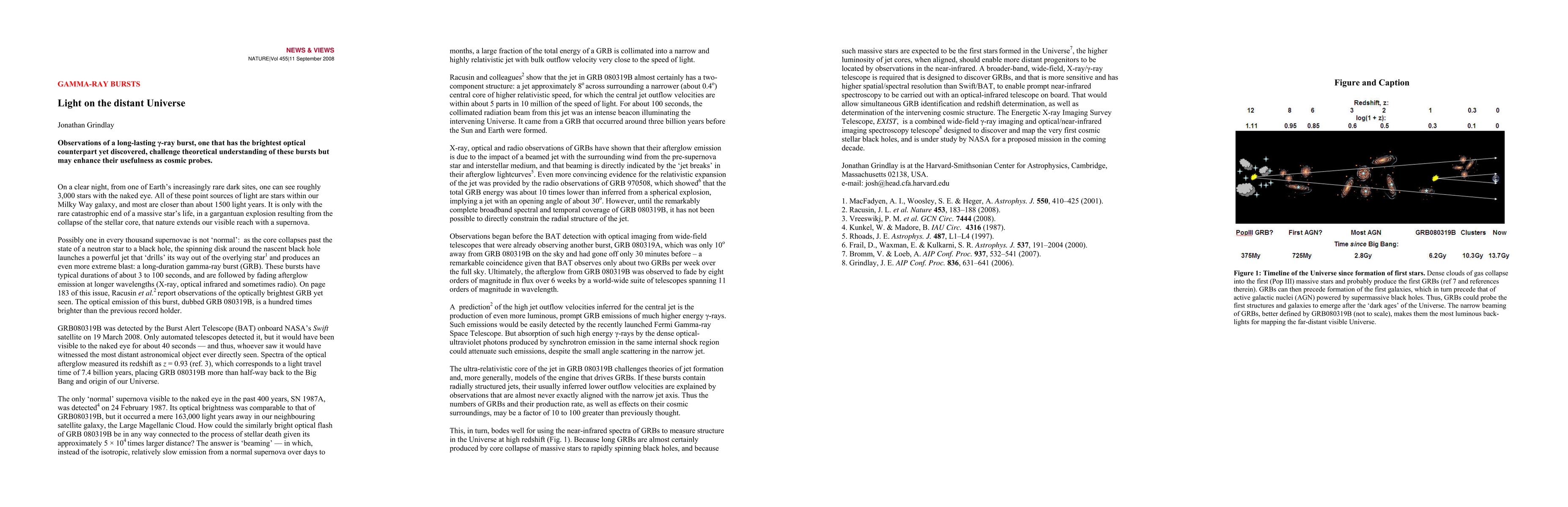 Observations of a long-lasting Gamma-ray burst, one that has the brightest optical counterpart yet discovered, challenge theoretical understanding of these bursts but may enhance their usefulness as cosmic probes.