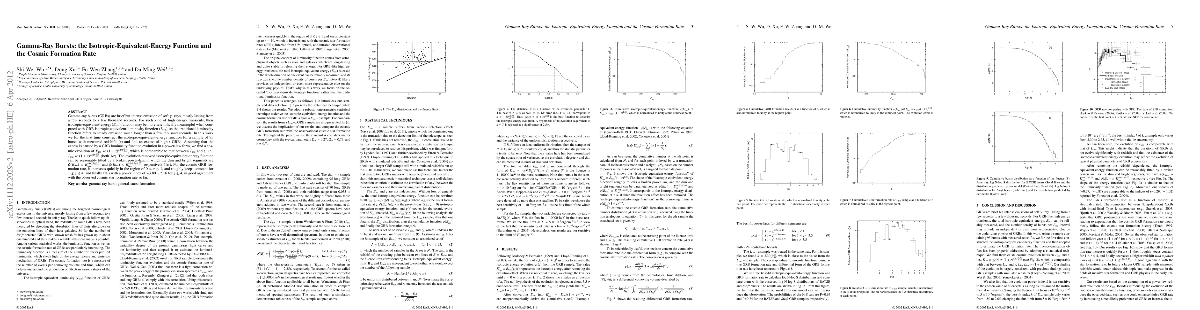 Gamma-ray bursts (GRBs) are brief but intense emission of soft $\gamma-$rays, mostly lasting from a few seconds to a few thousand seconds. For such kind of high energy transients, their isotropic-equivalent-energy ($E_{\rm iso}$) function may be more scientifically meaningful when compared with GRB isotropic-equivalent-luminosity function ($L_{\rm iso}$), as the traditional luminosity function refers to steady emission much longer than a few thousand seconds. In this work we for the first time construct the isotropic-equivalent-energy function for a sample of 95 bursts with measured redshifts ($z$) and find an excess of high-$z$ GRBs. Assuming that the excess is caused by a GRB luminosity function evolution in a power-law form, we find a cosmic evolution of $E_{\rm iso}\propto(1+z)^{1.80^{+0.36}_{-0.63}}$, which is comparable to that between $L_{\rm iso}$ and $z$, i.e., $L_{\rm iso}\propto(1+z)^{2.30^{+0.56}_{-0.51}}$ (both $1\sigma$). The evolution-removed isotropic-equivalent-energy function can be reasonably fitted by a broken power-law, in which the dim and bright segments are $\psi(E_{\rm iso})\propto E_{\rm iso}^{-0.27\pm0.01}$ and $\psi(E_{\rm iso})\propto E_{\rm iso}^{-0.87\pm0.07}$, respectively ($1\sigma$). For the cosmic GRB formation rate, it increases quickly in the region of $0 \leq z \lesssim 1$, and roughly keeps constant for $1\lesssim z \lesssim 4$, and finally falls with a power index of $-3.80\pm2.16$ for $z\gtrsim 4$, in good agreement with the observed cosmic star formation rate so far.