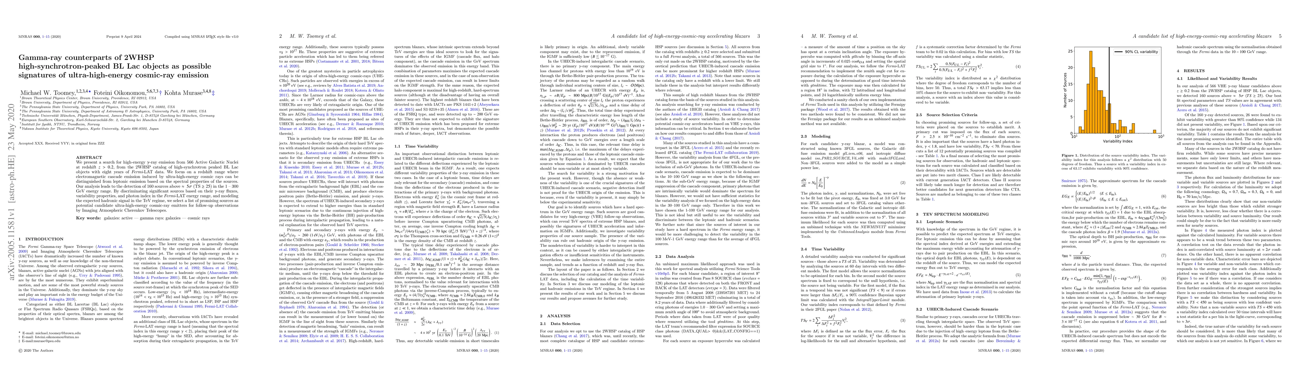 This study investigates high-energy gamma-ray emissions from 566 high-synchrotron-peaked BL Lac objects, identifying 160 sources with significant gamma-ray signals. The research aims to distinguish ultra-high-energy cosmic-ray signatures from leptonic emissions, selecting promising candidates for further TeV regime observations.