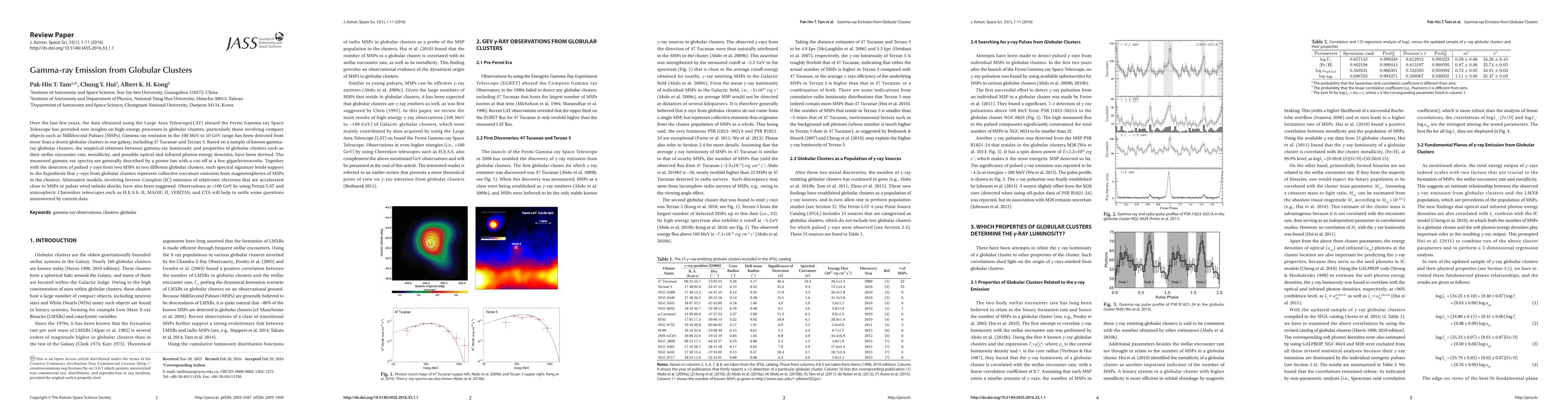This paper reports on gamma-ray emissions detected from globular clusters using the Fermi Gamma-ray Space Telescope, suggesting that these emissions likely originate from the collective curvature radiation of Millisecond Pulsars within the clusters. Future observations at higher energies aim to resolve uncertainties in the current models.
