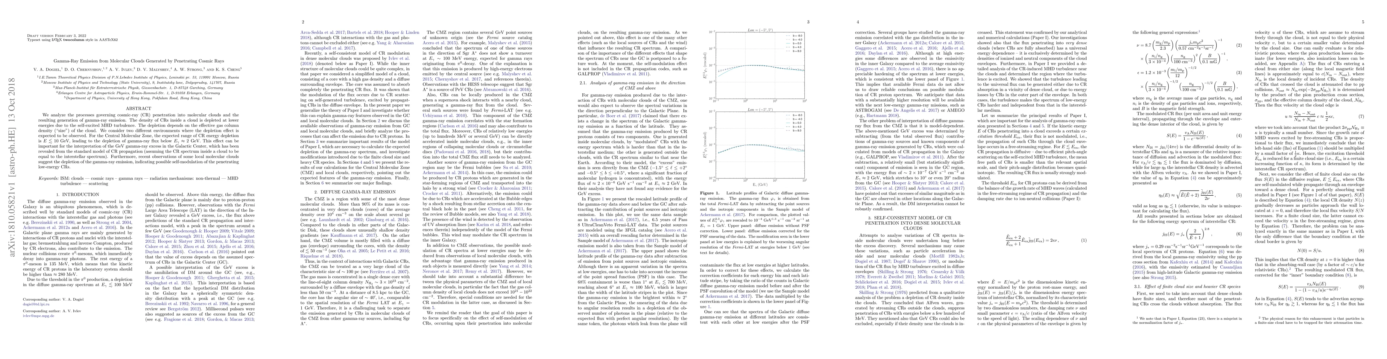 This paper investigates cosmic-ray penetration into molecular clouds and its impact on gamma-ray emission, finding that lower-energy cosmic rays are depleted due to self-excited MHD turbulence, affecting gamma-ray flux. The study suggests this depletion could explain the GeV gamma-ray excess in the Galactic Center and aligns with recent observations of local molecular clouds.