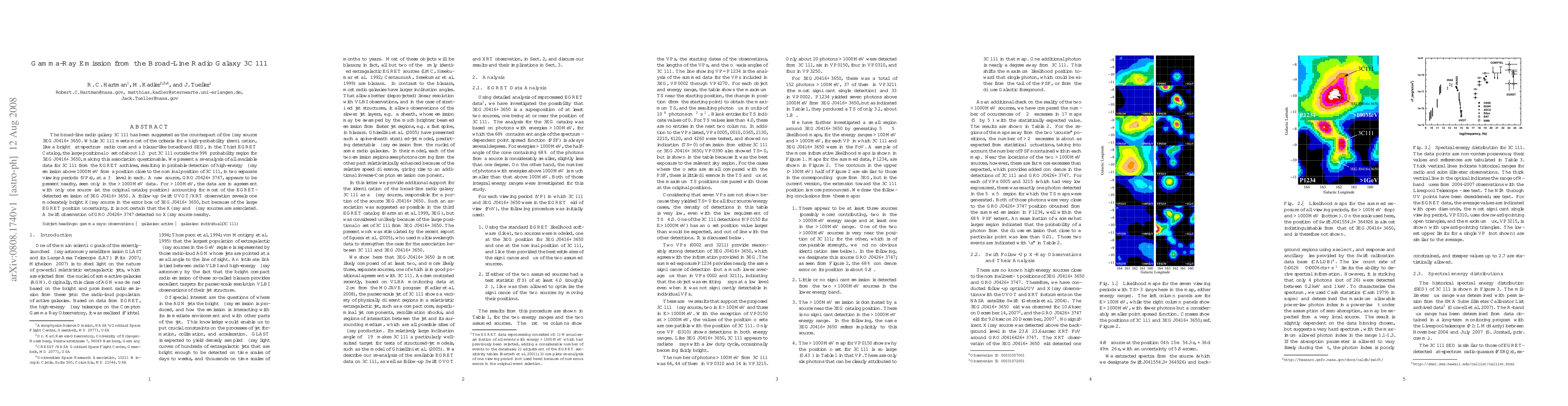 This study re-analyzes data from 3C111, suggesting probable high-energy gamma-ray emission detection above 1000 MeV from its position, despite previous doubts due to positional offset. A new source, GROJ0426+3747, is also identified nearby, complicating the association with the gamma-ray source 3EGJ0416+3650.