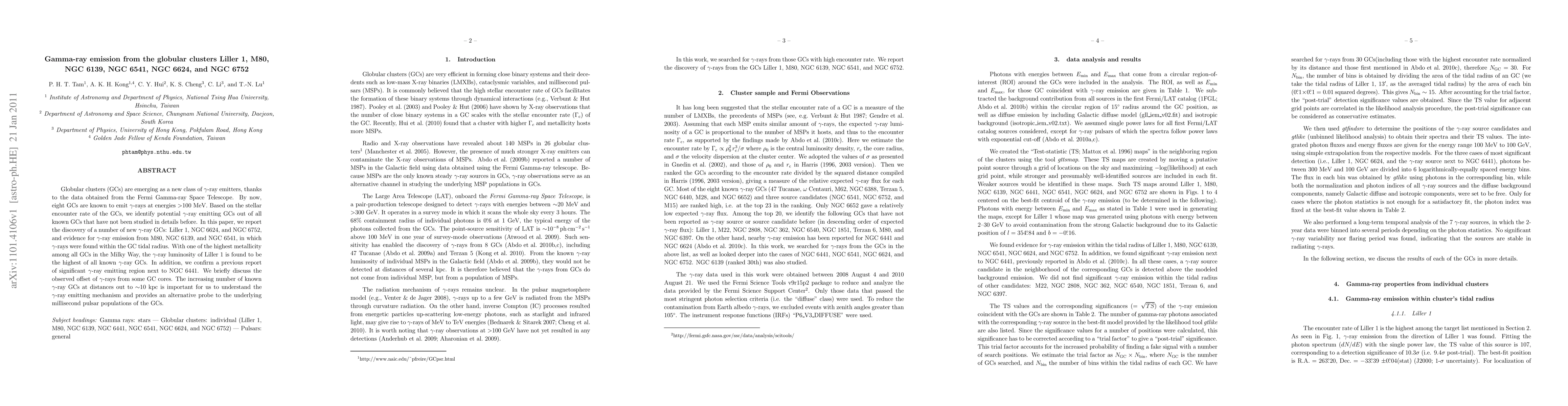 This paper reports the discovery of gamma-ray emissions from globular clusters Liller 1, NGC 6624, and NGC 6752, and provides evidence for gamma-ray emissions from M80, NGC 6139, and NGC 6541. The study highlights the increasing number of known gamma-ray globular clusters, which aids in understanding the gamma-ray emitting mechanisms and probing the underlying millisecond pulsar populations.