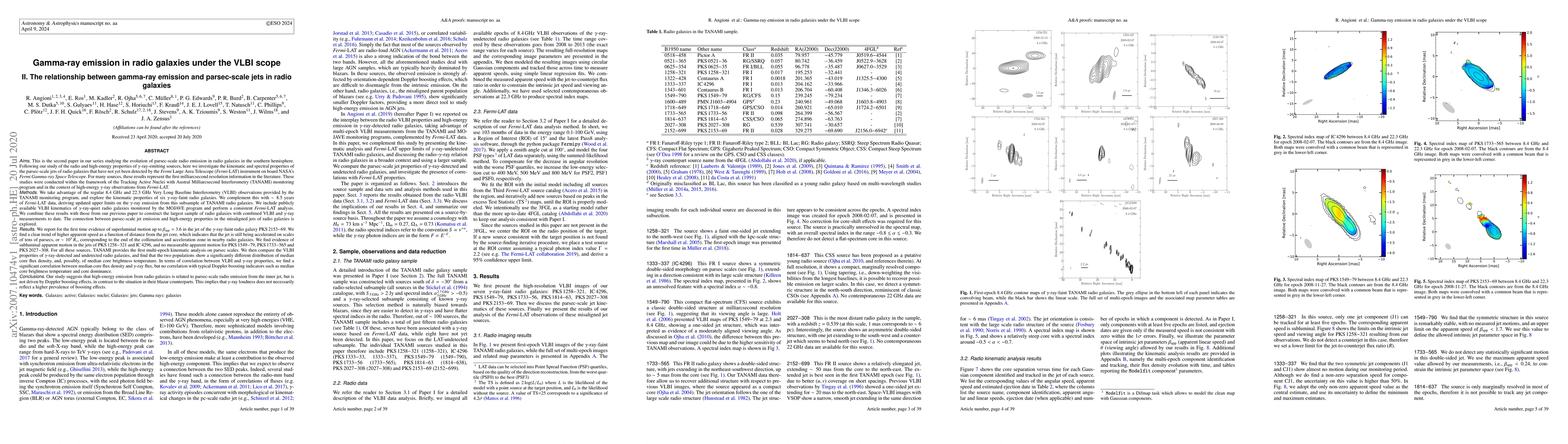 Following our study of the radio and high-energy properties of $\gamma$-ray-emitting radio galaxies, here we investigate the kinematic and spectral properties of the parsec-scale jets of radio galaxies that have not yet been detected by Fermi-LAT. We take advantage of the regular VLBI observations provided by the TANAMI monitoring program, and explore the kinematic properties of six $\gamma$-ray-faint radio galaxies. We include publicly available VLBI kinematics of $\gamma$-ray-quiet radio galaxies monitored by the MOJAVE program and perform a Fermi-LAT analysis, deriving upper limits. We combine these results with those from our previous paper to construct the largest sample of radio galaxies with combined VLBI and $\gamma$-ray measurements to date. We find superluminal motion up to $\beta_\mathrm{app}=3.6$ in the jet of PKS 2153$-$69. We find a clear trend of higher apparent speed as a function of distance from the jet core on scales of $\sim10^5\,R_s$, corresponding to the end of the collimation and acceleration zone in nearby radio galaxies. We find evidence of subluminal apparent motion in the jets of PKS 1258$-$321 and IC 4296, and no measurable motion for PKS 1549$-$79, PKS 1733$-$565 and PKS 2027$-$308. We compare the VLBI properties of $\gamma$-ray-detected and undetected radio galaxies, and find significantly different distributions of median core flux density, and, possibly, of median core brightness temperature. We find a significant correlation between median core flux density and $\gamma$-ray flux, but no correlation with typical Doppler boosting indicators such as median core brightness temperature and core dominance. Our study suggests that high-energy emission from radio galaxies is related to parsec-scale radio emission from the inner jet, but is not driven by Doppler boosting effects, in contrast to the situation in their blazar counterparts.