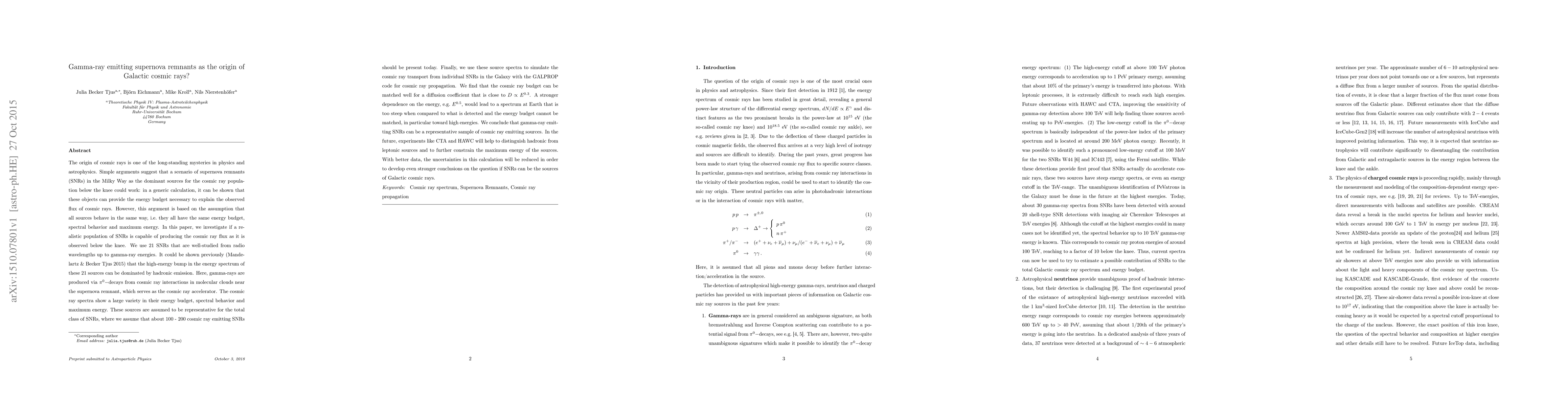 This paper investigates whether gamma-ray emitting supernova remnants (SNRs) could be the primary source of Galactic cosmic rays below the "knee." Using 21 well-studied SNRs, the authors find that a realistic population of SNRs can match the observed cosmic ray flux, provided the cosmic ray diffusion coefficient follows $D\propto E^{0.3}$.