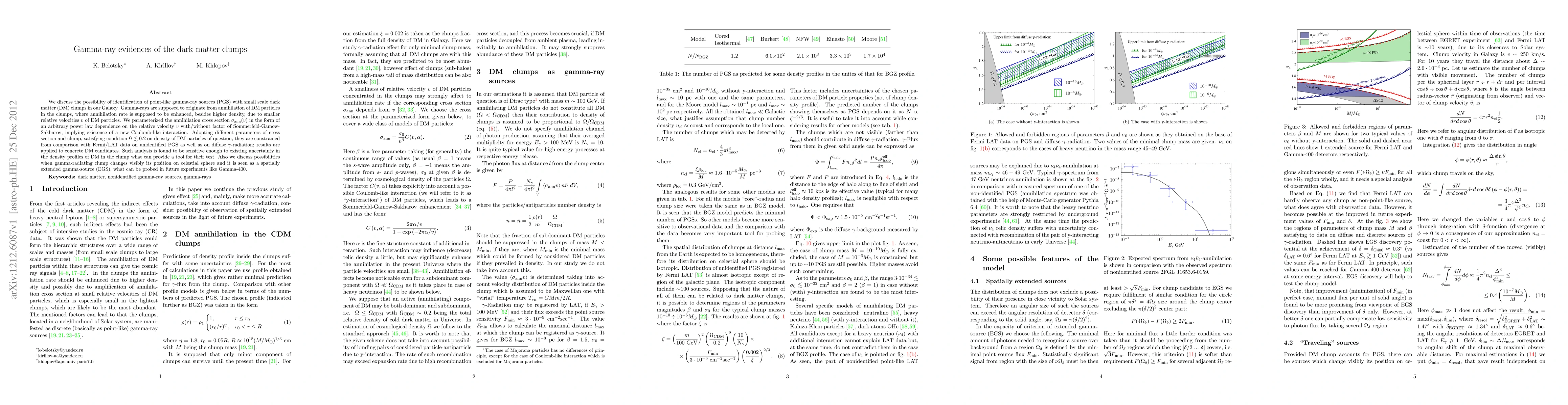 This paper explores the identification of point-like gamma-ray sources with small dark matter clumps in our Galaxy, suggesting that gamma-rays originate from DM particle annihilation in these clumps. The study uses Fermi/LAT data to constrain parameters of the annihilation cross-section and clump density, providing a tool for testing dark matter density profiles.