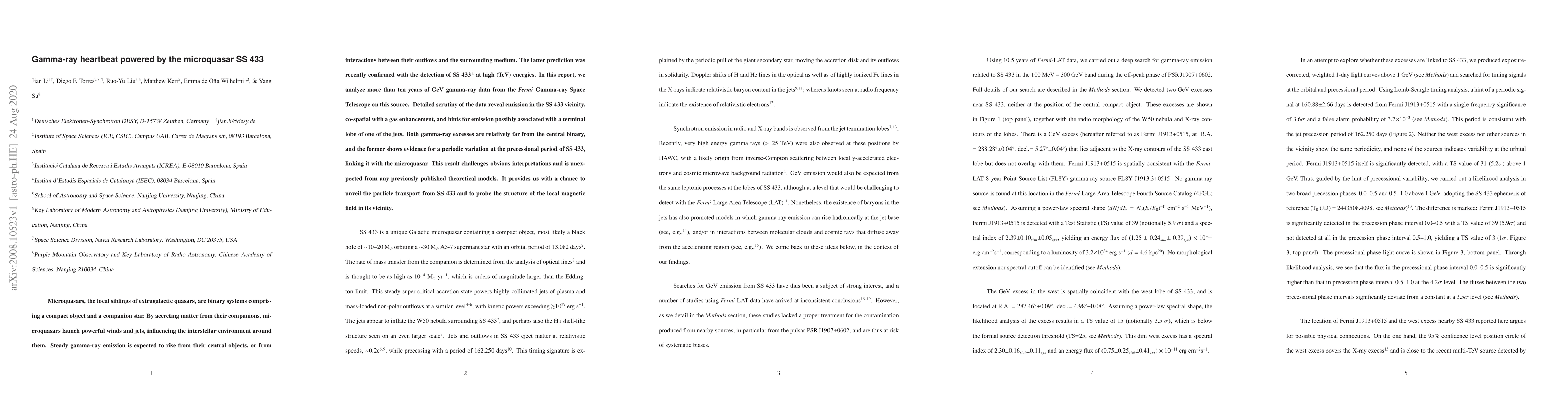 This paper analyzes over a decade of Fermi Gamma-ray observations of the microquasar SS 433, revealing gamma-ray emissions linked to the microquasar's jets and a gas enhancement, with a periodic variation tied to the source's precessional period, challenging existing theoretical models.