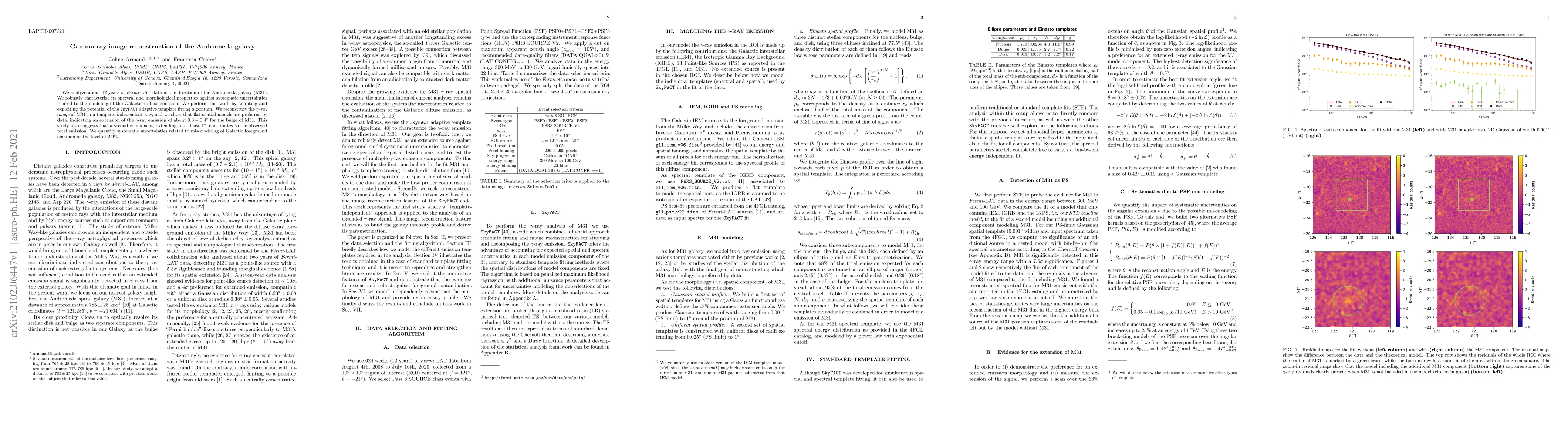 We analyze about 12 years of Fermi-LAT data in the direction of the Andromeda galaxy (M31). We robustly characterize its spectral and morphological properties against systematic uncertainties related to the modeling of the Galactic diffuse emission. We perform this work by adapting and exploiting the potential of the skyFACT adaptive template fitting algorithm. We reconstruct the gamma-ray image of M31 in a template-independent way, and we show that flat spatial models are preferred by data, indicating an extension of the $\gamma$-ray emission of about 0.3-0.4 degree for the bulge of M31. This study also suggests that a second component, extending to at least 1 degree, contributes to the observed total emission. We quantify systematic uncertainties related to mis-modeling of Galactic foreground emission at the level of 2.9%.