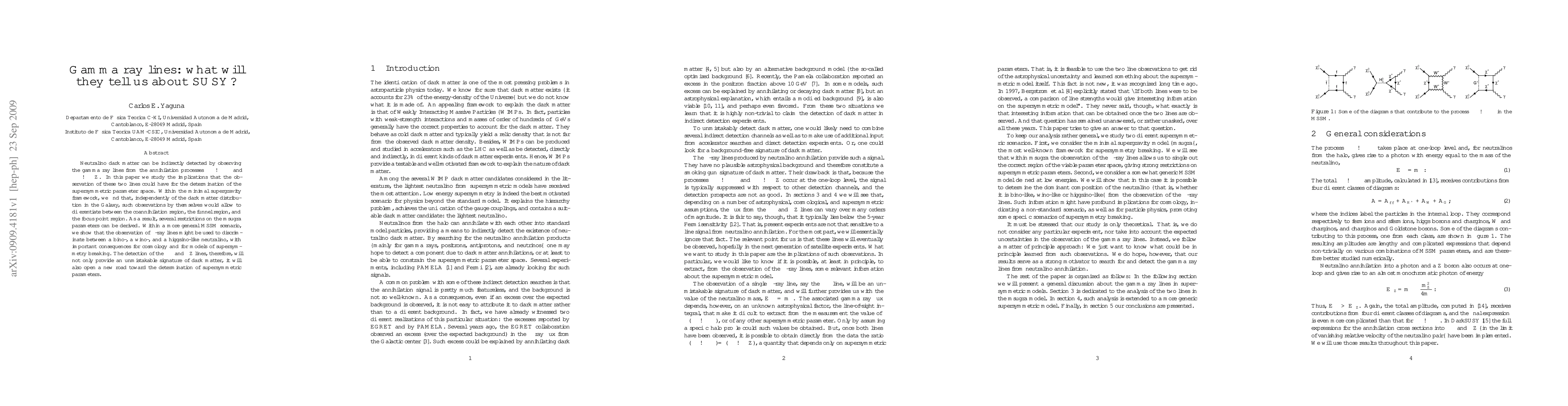 The paper presents a detailed analysis of gamma-ray lines from neutralino annihilation, demonstrating their potential to differentiate between various supersymmetric regions and discriminate between different neutralino compositions.