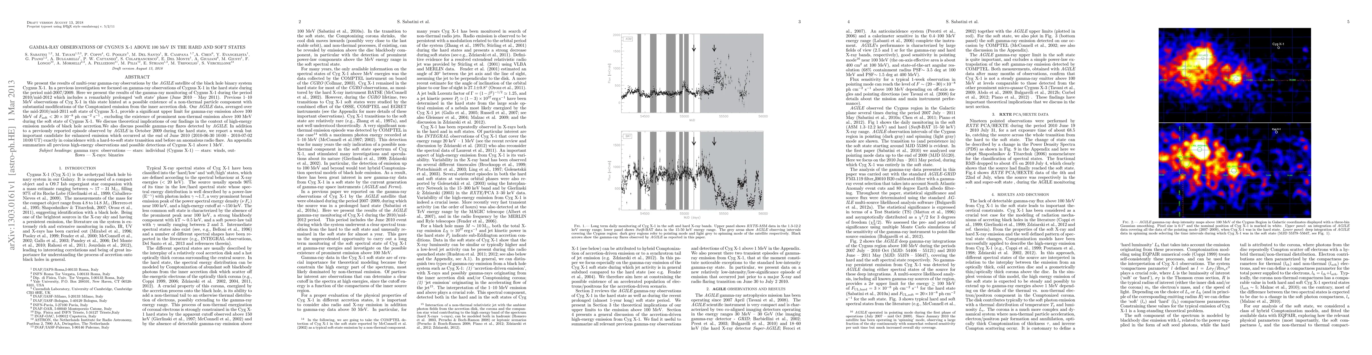 This paper reports on gamma-ray observations of Cygnus X-1 above 100 MeV by the AGILE satellite during 2010-2012, finding no prominent non-thermal emission during the soft state, and discusses a potential gamma-ray flare coinciding with a hard-to-soft state transition.