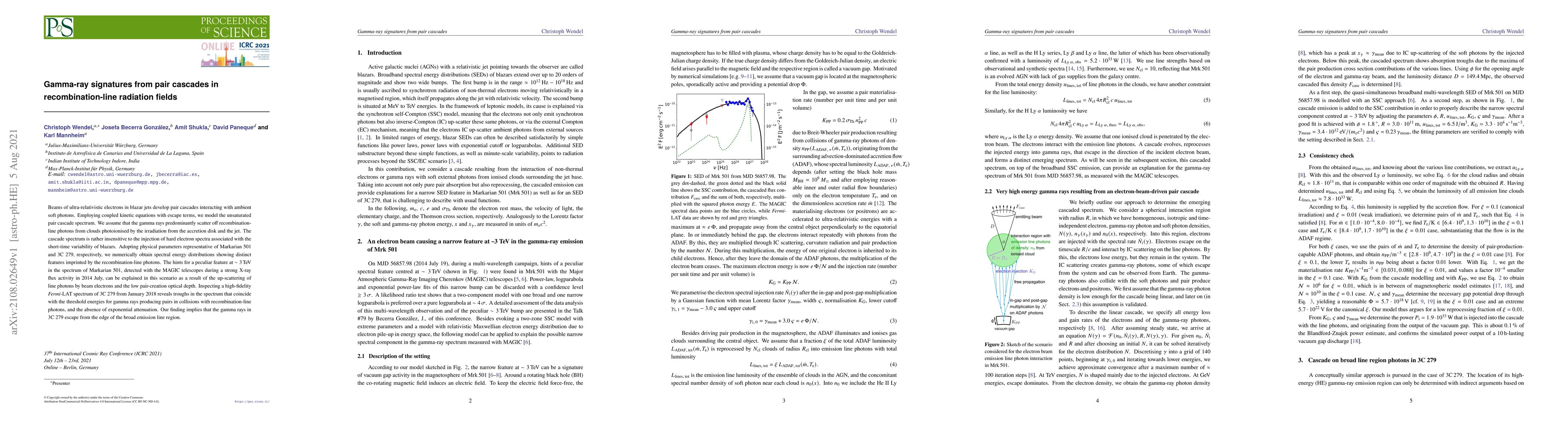 Beams of ultra-relativistic electrons in blazar jets develop pair cascades interacting with ambient soft photons. Employing coupled kinetic equations with escape terms, we model the unsaturated pair cascade spectrum. We assume that the gamma rays predominantly scatter off recombination-line photons from clouds photoionised by the irradiation from the accretion disk and the jet. The cascade spectrum is rather insensitive to the injection of hard electron spectra associated with the short-time variability of blazars. Adopting physical parameters representative of Markarian 501 and 3C 279, respectively, we numerically obtain spectral energy distributions showing distinct features imprinted by the recombination-line photons. The hints for a peculiar feature at ~3 TeV in the spectrum of Markarian 501, detected with the MAGIC telescopes during a strong X-ray flux activity in 2014 July, can be explained in this scenario as a result of the up-scattering of line photons by beam electrons and the low pair-creation optical depth. Inspecting a high-fidelity Fermi-LAT spectrum of 3C 279 from January 2018 reveals troughs in the spectrum that coincide with the threshold energies for gamma rays producing pairs in collisions with recombination-line photons, and the absence of exponential attenuation. Our finding implies that the gamma rays in 3C 279 escape from the edge of the broad emission line region.