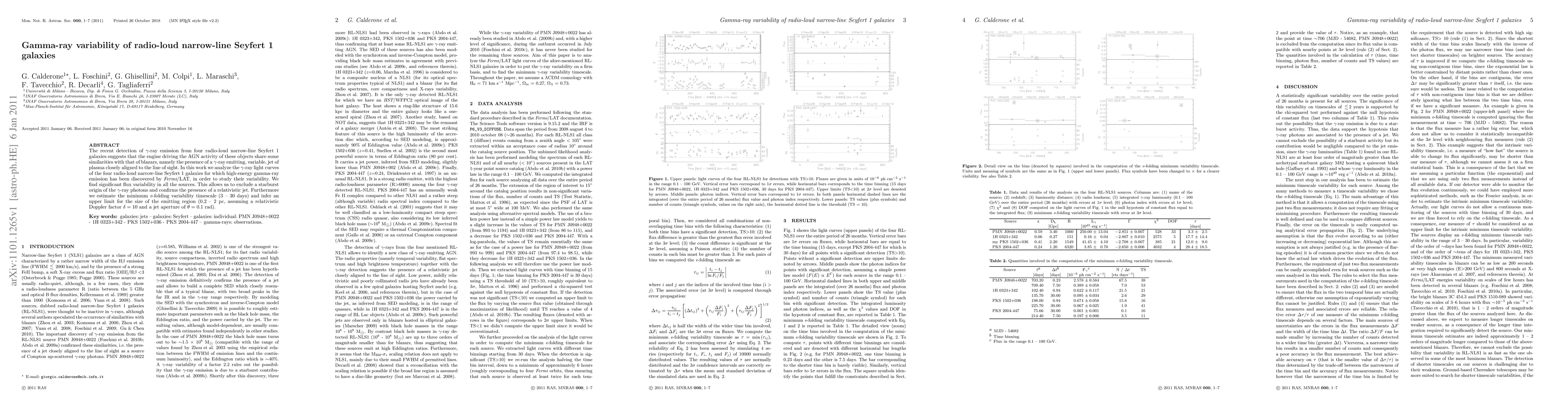 The recent detection of gamma-ray emission from four radio-loud narrow-line Seyfert 1 galaxies suggests that the engine driving the AGN activity of these objects share some similarities with that of blazars, namely the presence of a gamma-ray emitting, variable, jet of plasma closely aligned to the line of sight. In this work we analyze the gamma-ray light curves of the four radio-loud narrow-line Seyfert 1 galaxies for which high-energy gamma-ray emission has been discovered by Fermi/LAT, in order to study their variability. We find significant flux variability in all the sources. This allows us to exclude a starburst origin of the gamma-ray photons and confirms the presence of a relativistic jet. Furthermore we estimate the minimum e-folding variability timescale (3 - 30 days) and infer an upper limit for the size of the emitting region (0.2 - 2 pc, assuming a relativistic Doppler factor delta=10 and a jet aperture of theta=0.1 rad).