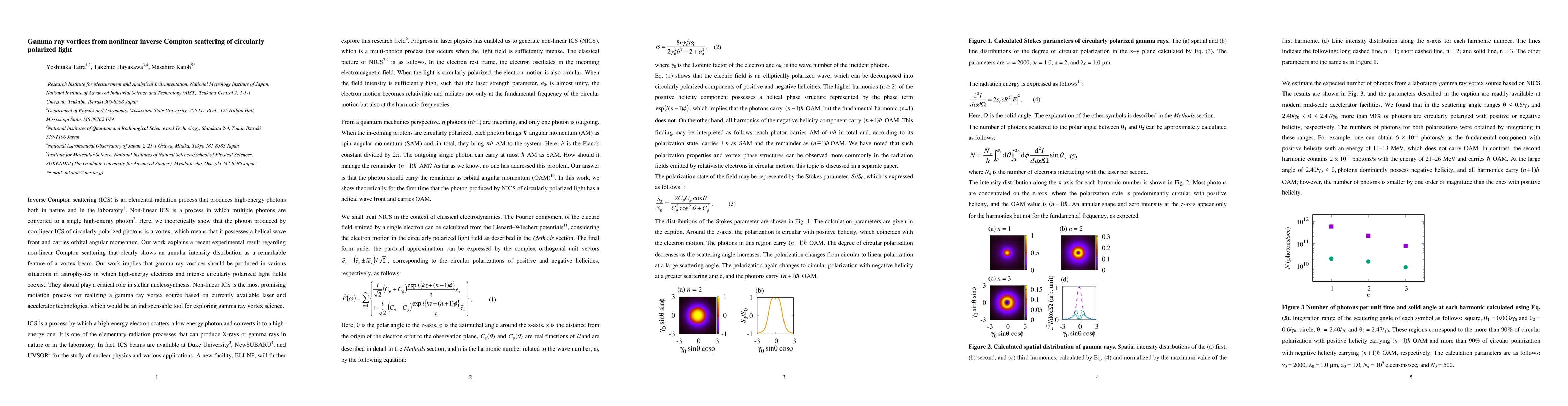 This paper theoretically demonstrates that non-linear inverse Compton scattering of circularly polarized light can produce high-energy photon vortices with helical wave fronts and orbital angular momentum, explaining recent experimental observations of annular intensity distributions. The findings suggest potential astrophysical applications and the feasibility of creating gamma ray vortex sources for advanced gamma ray research.