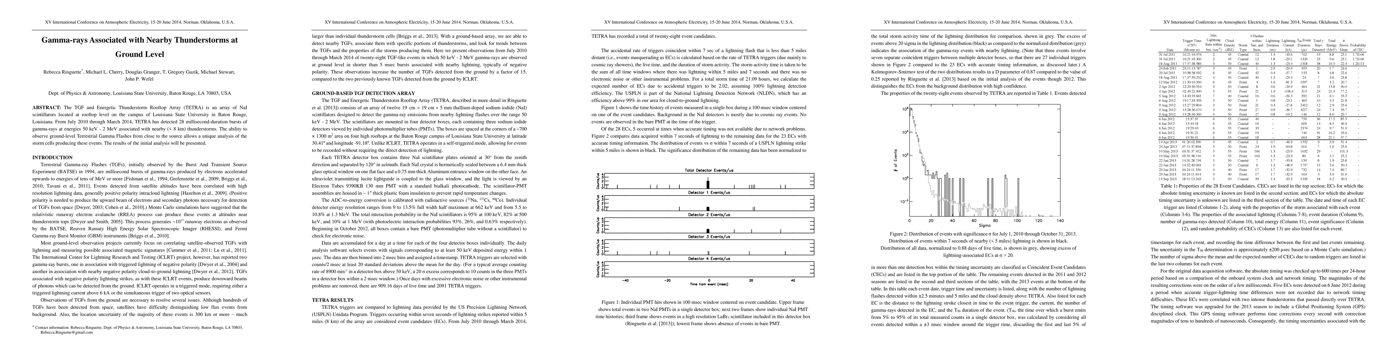 The TGF and Energetic Thunderstorm Rooftop Array (TETRA) is an array of NaI scintillators located at rooftop level on the campus of Louisiana State University in Baton Rouge, Louisiana. From July 2010 through March 2014, TETRA has detected 28 millisecond-duration bursts of gamma-rays at energies 50 keV - 2 MeV associated with nearby (< 8 km) thunderstorms. The ability to observe ground-level Terrestrial Gamma Flashes from close to the source allows a unique analysis of the storm cells producing these events. The results of the initial analysis will be presented.