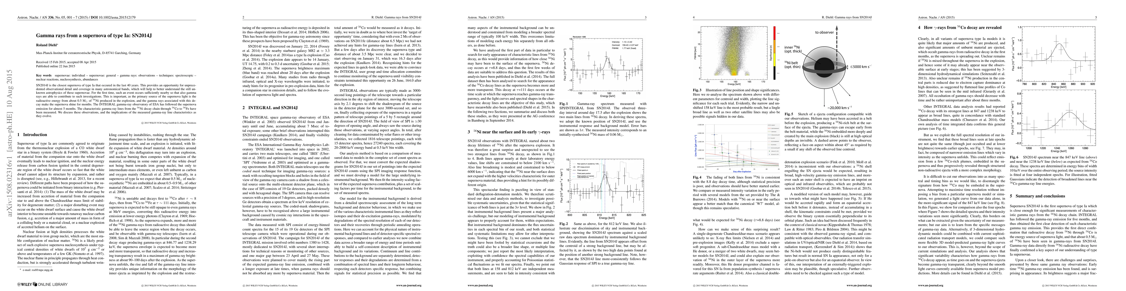 SN2014J is the closest supernova of type Ia that occured in the last 40 years. This provides an opportunity for unprecedented observational detail and coverage in many astronomical bands, which will help to better understand the still unknown astrophysics of these supernovae. For the first time, such an event occurs sufficiently nearby so that also gamma rays are able to contribute to such investigations. This is important, as the primary source of the supernova light is the radioactive energy from about 0.5 M$_\odot$ of $^{56}$Ni produced in the explosion, and the gamma rays associated with this decay make the supernova shine for months. The INTEGRAL gamma-ray observatory of ESA has followed the supernova emission for almost 5 months. The characteristic gamma ray lines from the $^{56}$Ni decay chain through $^{56}$Co to $^{56}$Fe have been measured. We discuss these observations, and the implications of the measured gamma-ray line characteristics as they evolve.