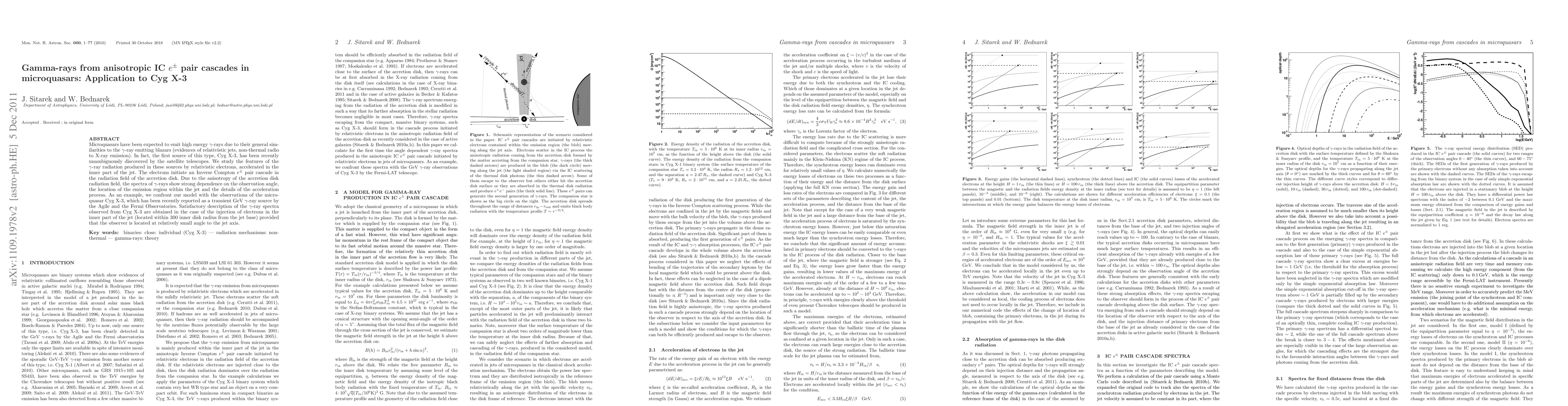 Microquasars have been expected to emit high energy gamma-rays due to their general similarities to the gamma-ray emitting blazars (evidences of relativistic jets, non-thermal radio to X-ray emission). In fact, the first source of this type, Cyg X-3, has been recently unambiguously discovered by the satellite telescopes. We study the features of the gamma-ray radiation produced in these sources by relativistic electrons, accelerated in the inner part of the jet. The electrons initiate an Inverse Compton e^\pm pair cascade in the radiation field of the accretion disk. Due to the anisotropy of the accretion disk radiation field, the spectra of gamma-rays show strong dependence on the observation angle, the location of the emission region within the jet and the details of the acceleration process. As an example, we confront our model with the observations of the microquasar Cyg X-3, which has been recently reported as a transient GeV gamma-ray source by the Agile and the Fermi Observatories. Satisfactory description of the gamma-ray spectra observed from Cyg X-3 are obtained in the case of the injection of electrons in the inner part of the jet (located within 300 inner disk radius from the jet base) provided that the observer is located at relatively small angle to the jet axis.