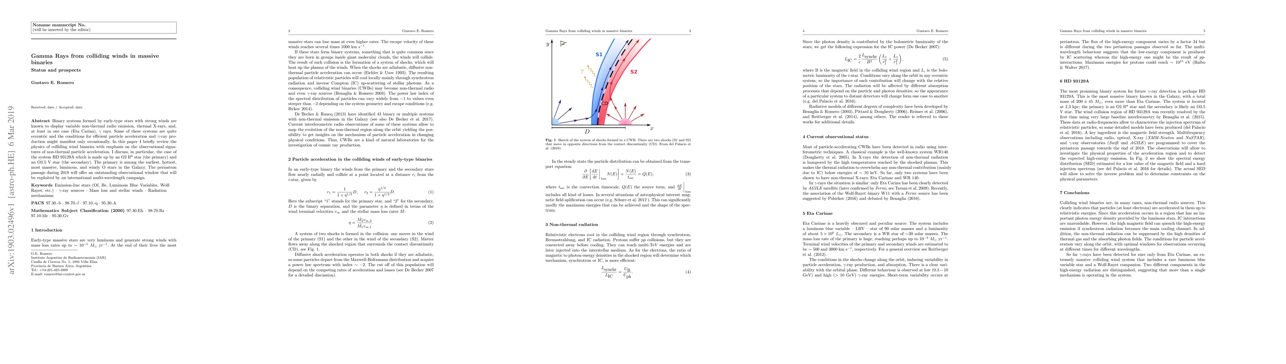 Binary systems formed by early-type stars with strong winds are known to display variable non-thermal radio emission, thermal X-rays, and, at least in one case (Eta Carina), $\gamma$ rays. Some of these systems are quite eccentric and the conditions for efficient particle acceleration and $\gamma$-ray production might manifest only occasionally. In this paper I briefly review the physics of colliding wind binaries with emphasis on the observational signatures of non-thermal particle acceleration. I discuss, in particular, the case of the system HD 93129A which is made up by an O2 If* star (the primary) and an O3.5 V star (the secondary). The primary is among the earliest, hottest, most massive, luminous, and windy O stars in the Galaxy. The periastron passage during 2018 will offer an outstanding observational window that will be exploited by an international multi-wavelength campaign.