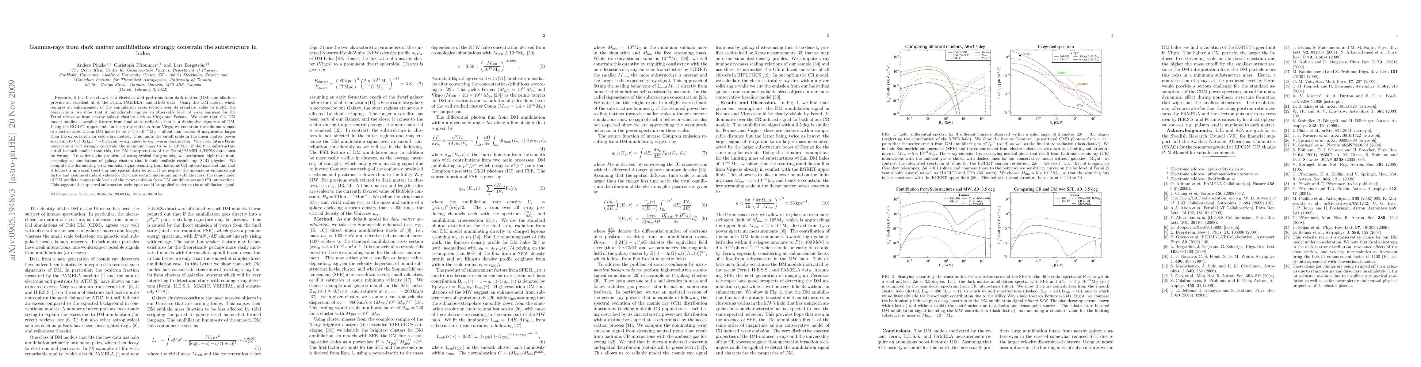 This paper demonstrates that dark matter (DM) annihilations, requiring an enhanced annihilation cross section, predict significant gamma-ray emissions from nearby galaxy clusters, constraining the minimum mass of substructures within DM halos to be > 5x10^-3 M_sun. Future Fermi observations may further constrain this to > 10^3 M_sun, challenging the cold dark matter model and supporting warm dark matter scenarios.