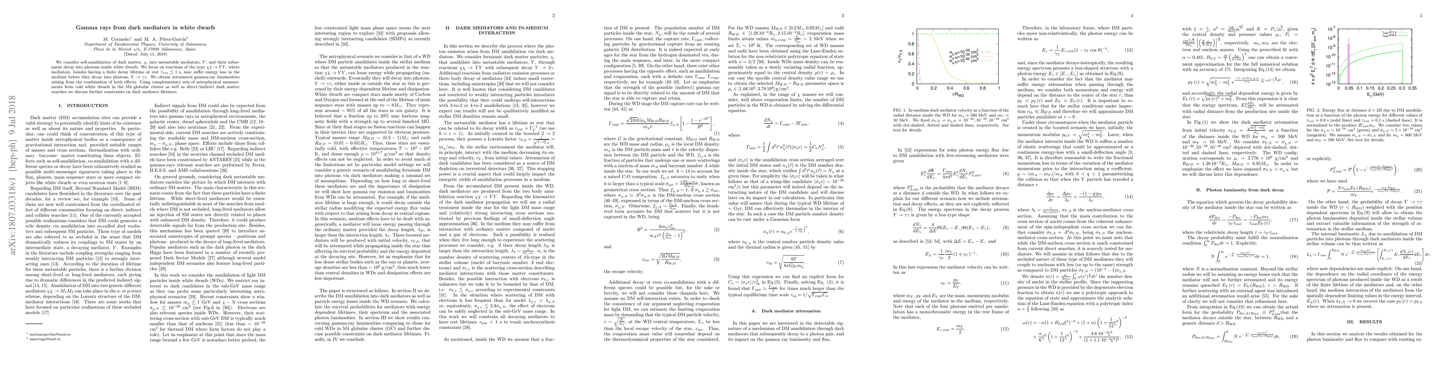 Researchers explore a possible way dark matter could be self-annihilated in white dwarfs, producing gamma rays, and discuss constraints on dark mediator lifetimes based on astrophysical measurements and indirect searches.