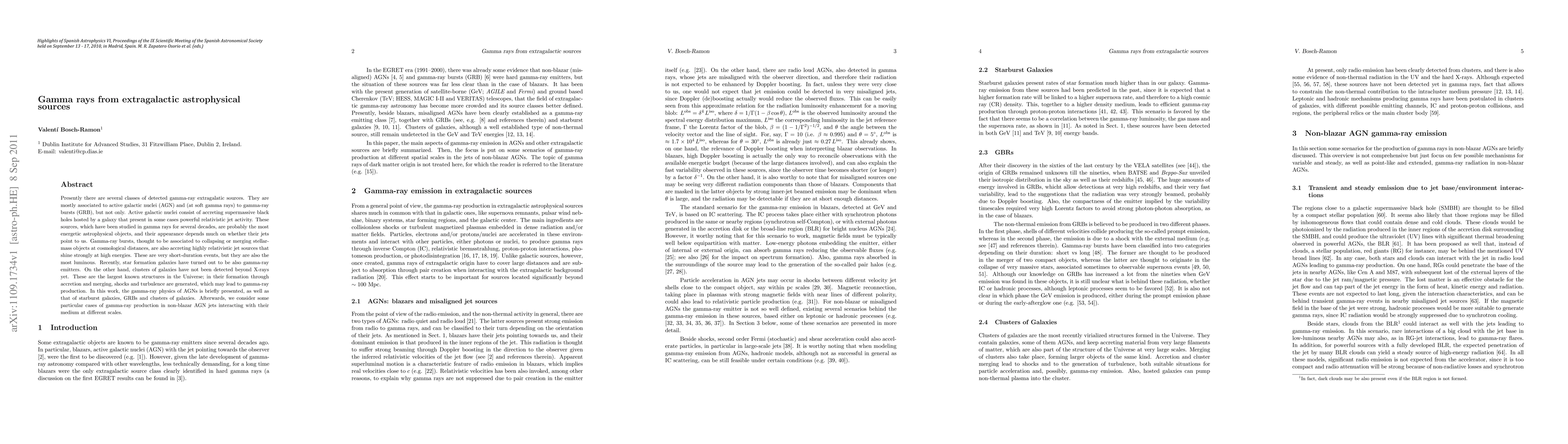 This paper explores gamma-ray sources from extragalactic astrophysical objects like active galactic nuclei, gamma-ray bursts, starburst galaxies, and galaxy clusters, shedding light on their physics and production mechanisms.