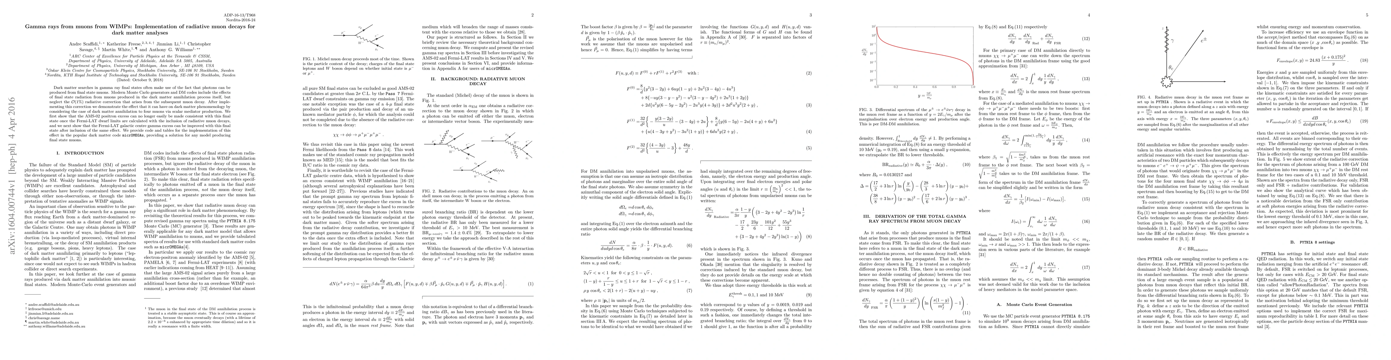 Dark matter searches in gamma ray final states often make use of the fact that photons can be produced from final state muons. Modern Monte Carlo generators and DM codes include the effects of final state radiation from muons produced in the dark matter annihilation process itself, but neglect the O(1%) radiative correction that arises from the subsequent muon decay. After implementing this correction we demonstrate the effect that it can have on dark matter phenomenology by considering the case of dark matter annihilation to four muons via scalar mediator production. We first show that the AMS-02 positron excess can no longer easily be made consistent with this final state once the Fermi-LAT dwarf limits are calculated with the inclusion of radiative muon decays, and we next show that the Fermi-LAT galactic centre gamma excess can be improved with this final state after inclusion of the same effect. We provide code and tables for the implementation of this effect in the popular dark matter code micrOMEGAs, providing a solution for any model producing final state muons.