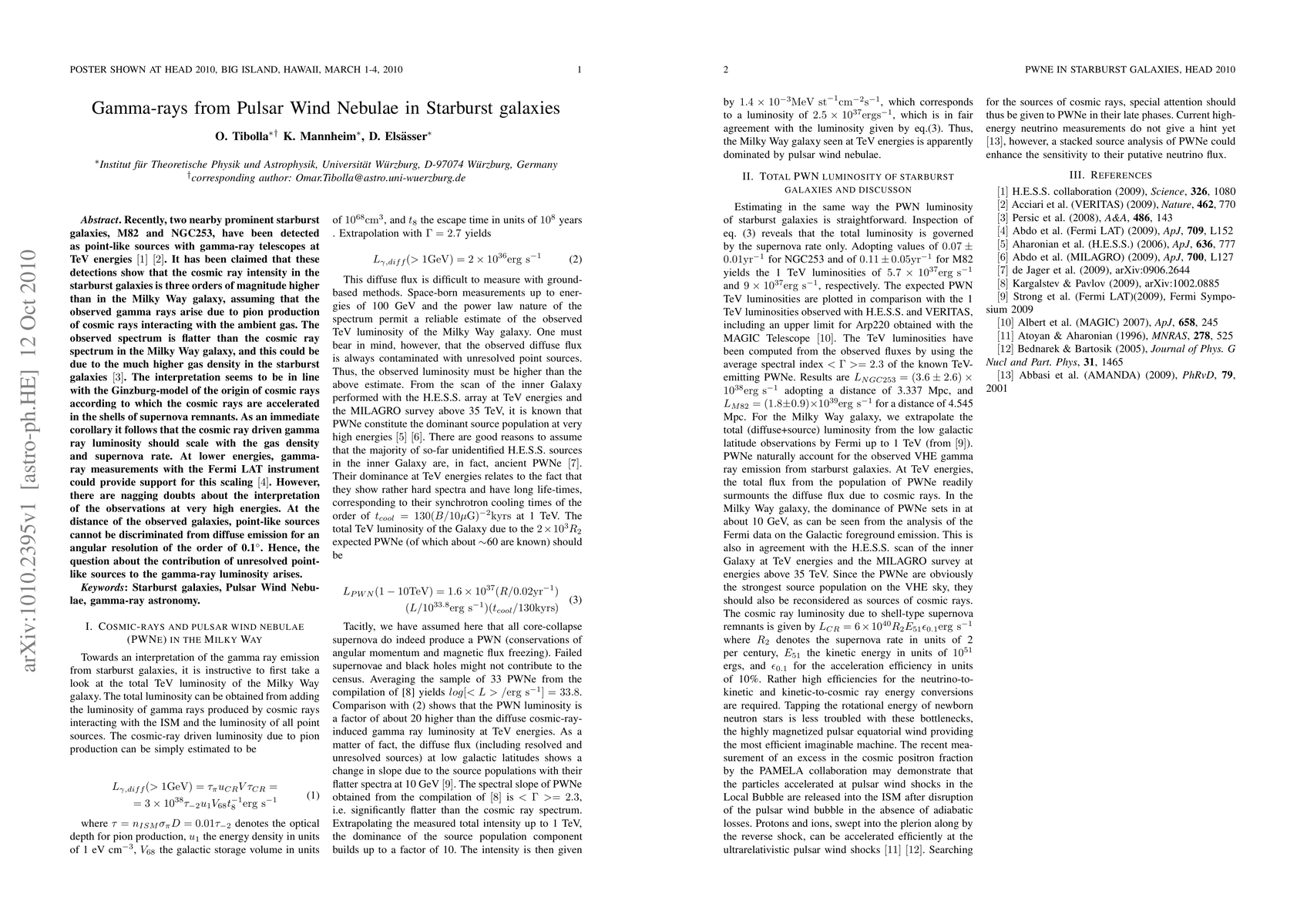 Recently, two nearby prominent starburst galaxies, M82 and NGC253, have been detected as point-like sources with gamma-ray telescopes at TeV energies [1] [2]. It has been claimed that these detections show that the cosmic ray intensity in the starburst galaxies is three orders of magnitude higher than in the Milky Way galaxy, assuming that the observed gamma rays arise due to pion production of cosmic rays interacting with the ambient gas. The observed spectrum is flatter than the cosmic ray spectrum in the Milky Way galaxy, and this could be due to the much higher gas density in the starburst galaxies [3]. The interpretation seems to be in line with the Ginzburg-model of the origin of cosmic rays according to which the cosmic rays are accelerated in the shells of supernova remnants. As an immediate corollary it follows that the cosmic ray driven gamma ray luminosity should scale with the gas density and supernova rate. At lower energies, gamma-ray measurements with the Fermi LAT instrument could provide support for this scaling [4]. However, there are nagging doubts about the interpretation of the observations at very high energies. At the distance of the observed galaxies, point-like sources cannot be discriminated from diffuse emission for an angular resolution of the order of 0.1 deg. Hence, the question about the contribution of unresolved point-like sources to the gamma-ray luminosity arises.