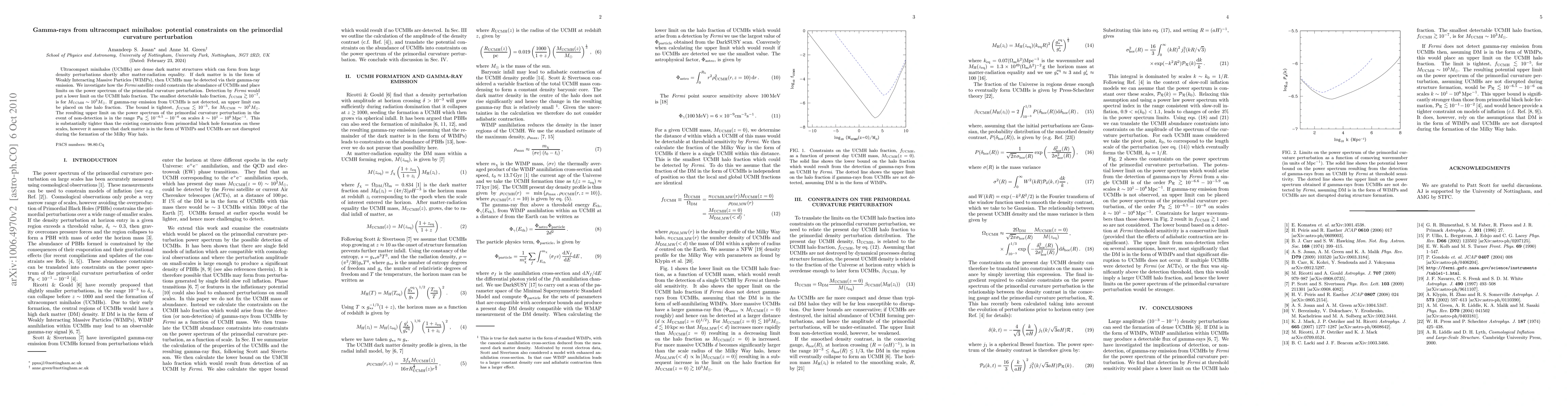 The paper presents a method to constrain the abundance of UCMHs using gamma-ray emission detected by the Fermi satellite, translating these constraints into limits on the power spectrum of the primordial curvature perturbation.