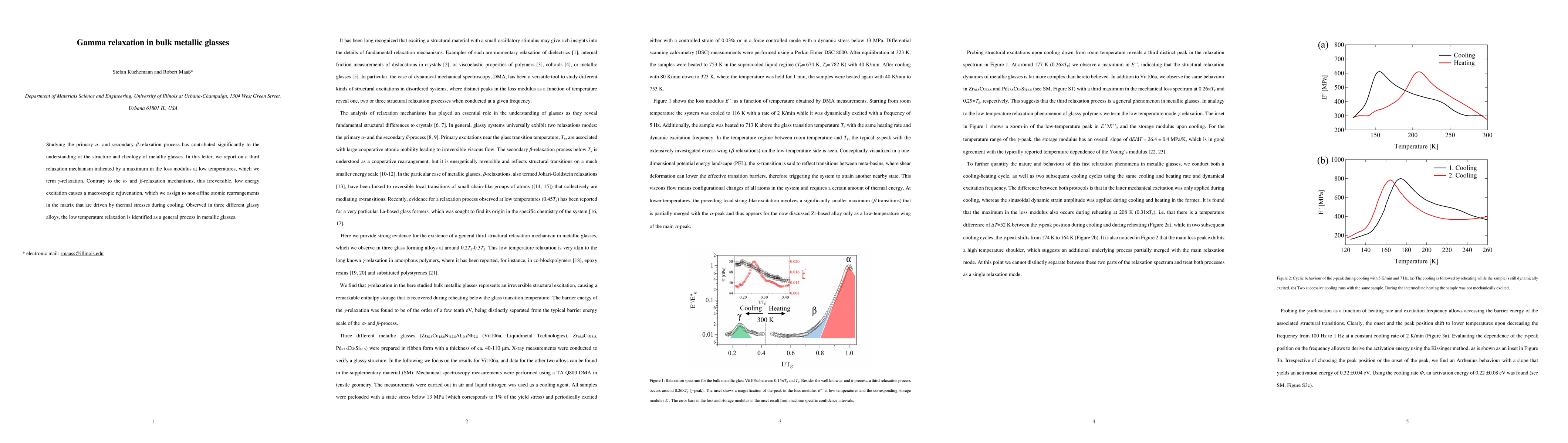 Researchers identify a new relaxation mechanism, gamma relaxation, in bulk metallic glasses, which causes macroscopic rejuvenation through non-affine atomic rearrangements at low temperatures.