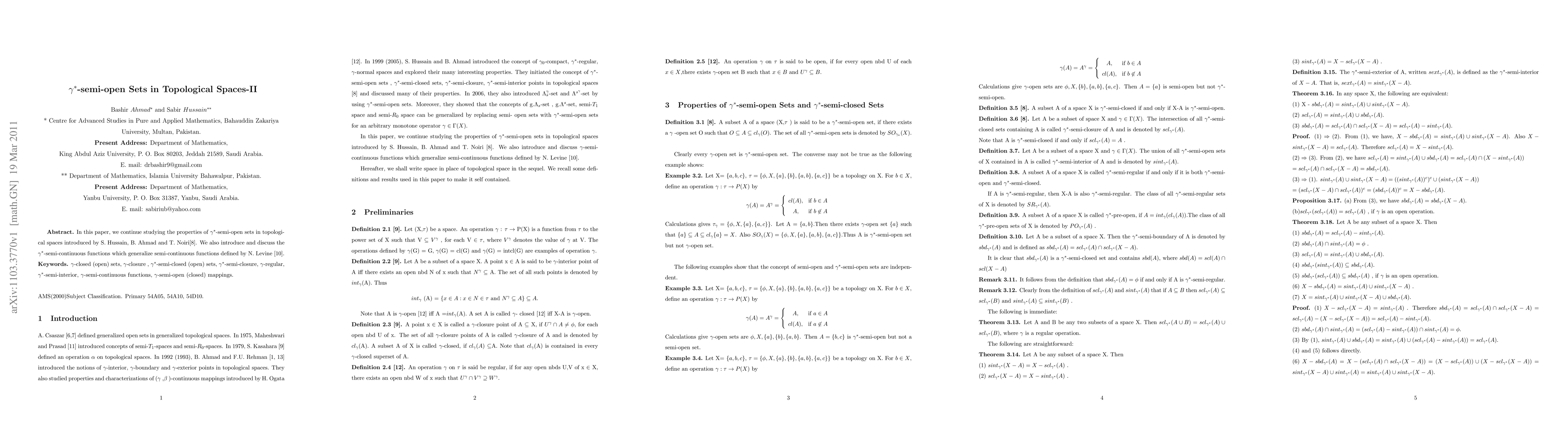 This paper investigates further properties of $\gamma^{*}$-semi-open sets in topological spaces, building on prior work. It also introduces and explores $\gamma^{*}$-semi-continuous functions, a generalization of Levine's semi-continuous functions.