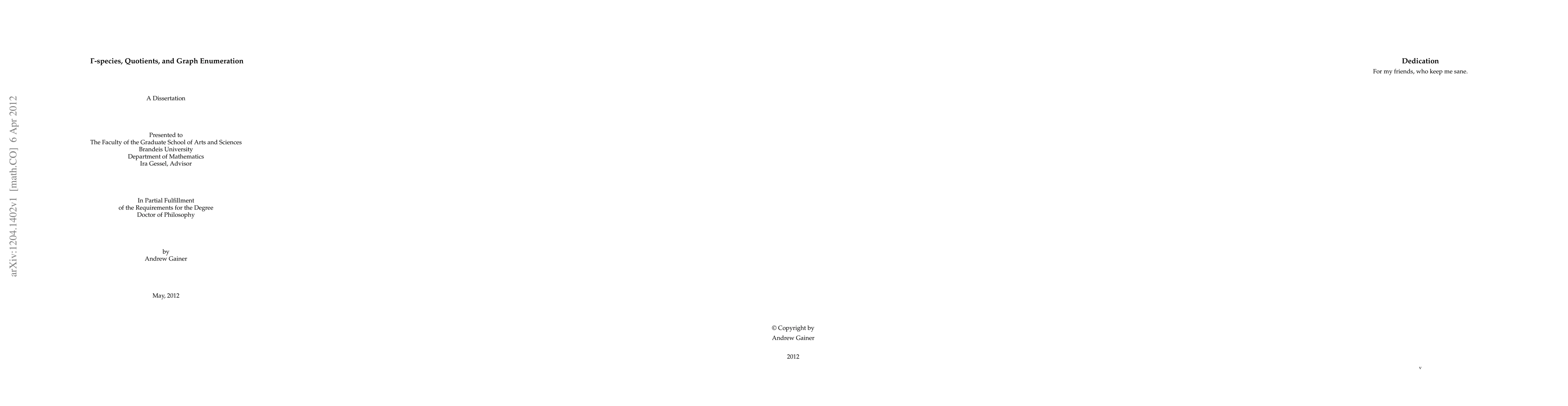 The theory of {\Gamma}-species is developed to allow species-theoretic study of quotient structures in a categorically rigorous fashion. This new approach is then applied to two graph-enumeration problems which were previously unsolved in the unlabeled case-bipartite blocks and general k-trees.