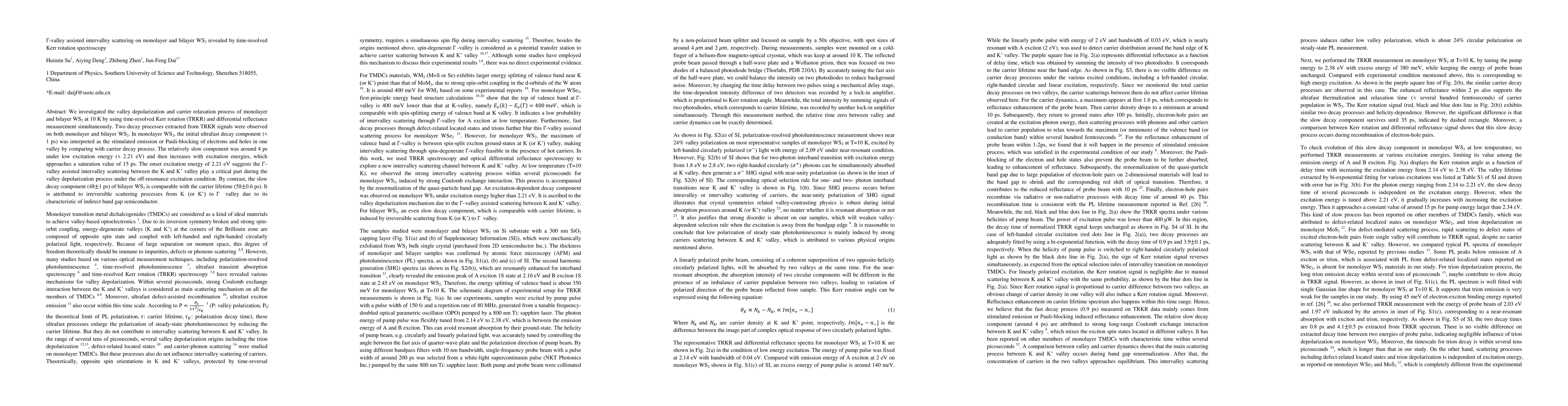 We investigated the valley depolarization and carrier relaxation process of monolayer and bilayer WS2 at 10 K by using time-resolved Kerr rotation (TRKR) and differential reflectance measurement simultaneously. Two decay processes extracted from TRKR signals were observed on both monolayer and bilayer WS2. In monolayer WS2, the initial ultrafast decay component (less than 1 ps) was interpreted as the stimulated emission or Pauli-blocking of electrons and holes in one valley by comparing with carrier decay process. The relatively slow component was around 4 ps under low excitation energy (less than 2.21 eV) and then increases with excitation energies, which approaches a saturation value of 15 ps. The onset excitation energy of 2.21 eV suggests the ${\Gamma}$-valley assisted intervalley scattering between the K and K' valley play a critical part during the valley depolarization process under the off-resonance excitation condition. By contrast, the slow decay component (48 ps) of bilayer WS2 is comparable with the carrier lifetime (58 ps). It is attributed to irreversible scattering processes from K (or K') to ${\Gamma}$ valley due to its characteristic of indirect band gap semiconductor.