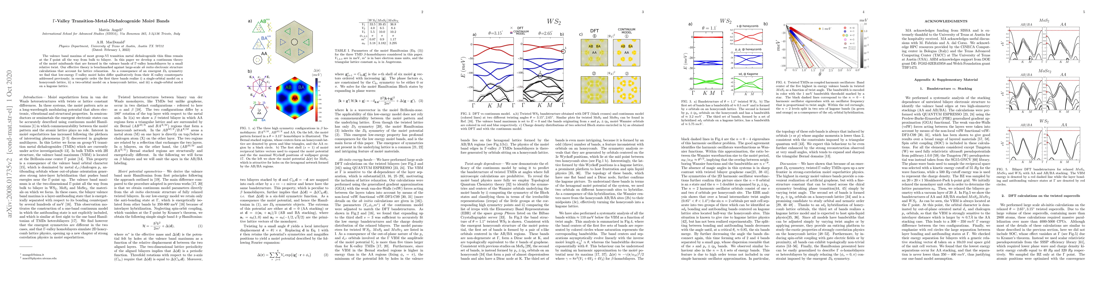 The valence band maxima of most group-VI transition metal dichalcogenide thin films remain at the $\Gamma$-point all the way from bulk to bilayer. In this paper we develop a continuum theory of the moir\`e minibands that are formed in the valence bands of $\Gamma$-valley homobilayers by a small relative twist. Our effective theory is benchmarked against large-scale ab initio electronic structure calculations that account for lattice relaxation. As a consequence of an emergent $D_6$ symmetry we find that low-energy $\Gamma$-valley moir\`e holes differ qualitatively from their K-valley counterparts addressed previously; in energetic order the first three bands realize i) a single-orbital model on a honeycomb lattice, ii) a two-orbital model on a honeycomb lattice, and iii) a single-orbital model on a kagome lattice.