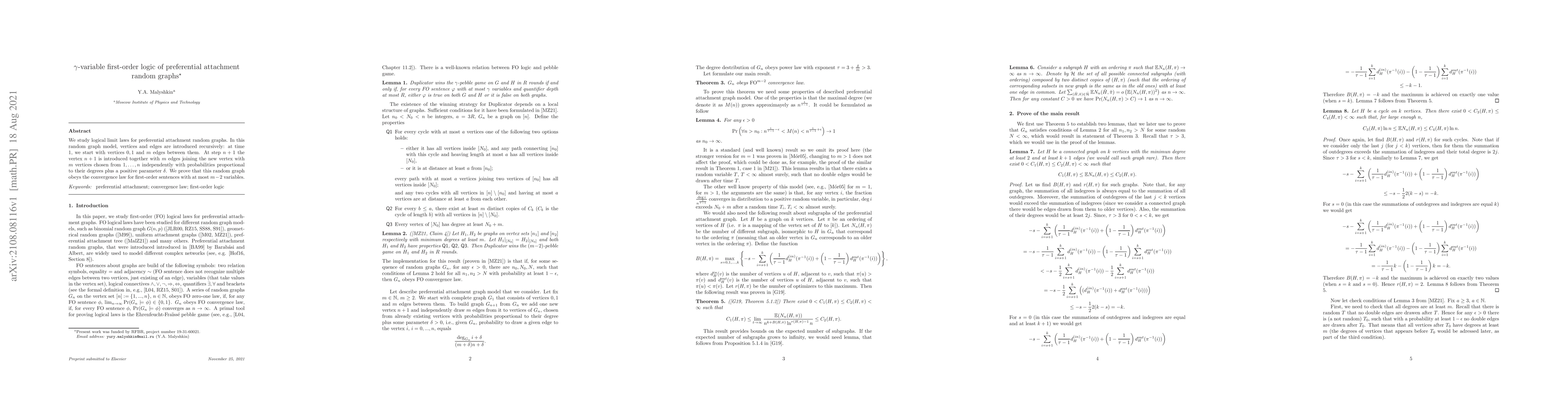This paper investigates the logical limit laws for preferential attachment random graphs, demonstrating that these graphs converge in first-order logic for sentences with up to $m-2$ variables, with vertices and edges introduced recursively based on degree-dependent probabilities.