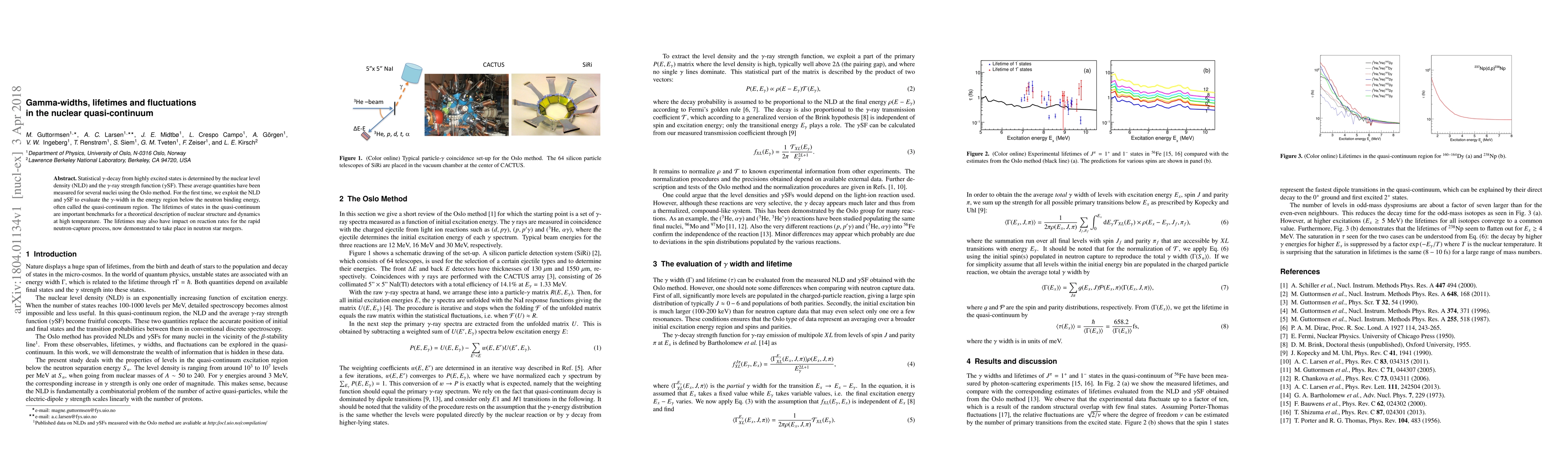 This paper investigates the gamma-widths and lifetimes of nuclear states in the quasi-continuum region using nuclear level density and gamma-ray strength function measurements. The findings provide crucial benchmarks for nuclear structure theories and may influence reaction rates in neutron star mergers.