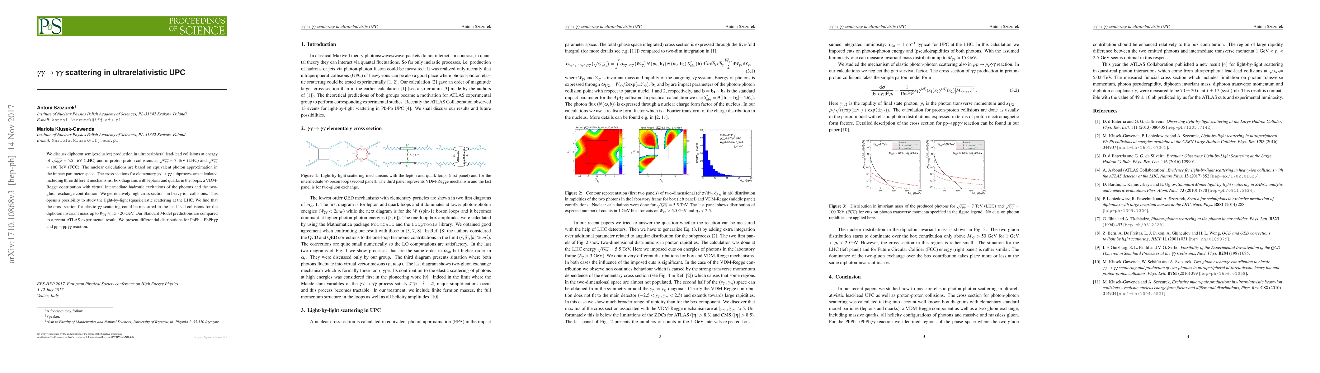 Researchers studied gamma-gamma scattering in ultrarelativistic collisions at the LHC, finding high cross sections for heavy ion collisions that could enable light-by-light scattering studies, with potential detection of elastic gamma-gamma scattering up to 15-20 GeV.