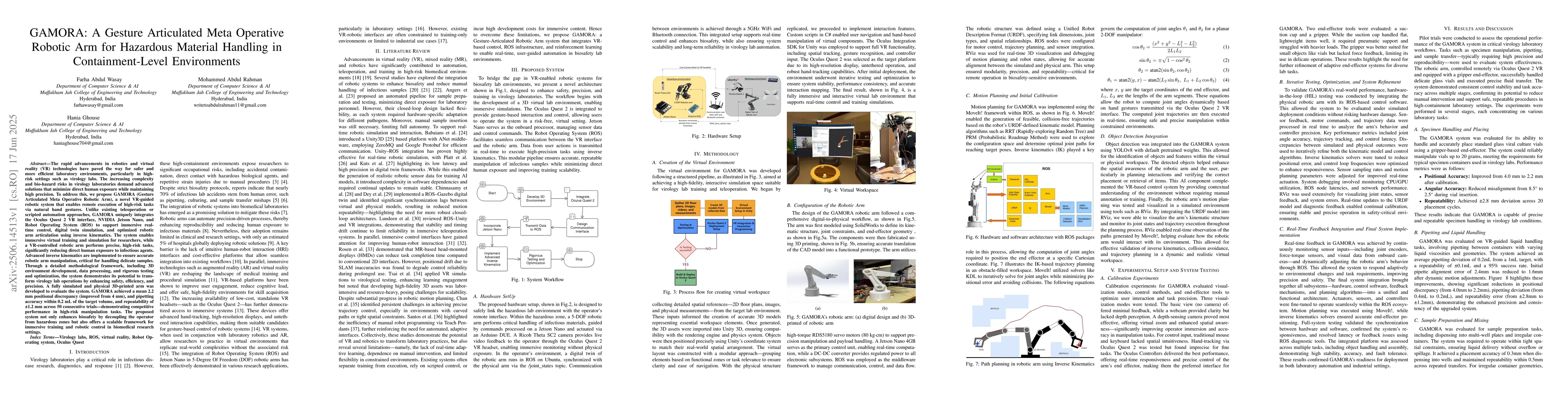 The development of GAMORA, a VR-guided robotic system using real-time immersive control, digital twin simulation, and inverse kinematics-based articulation for precise manipulation in hazardous environments.