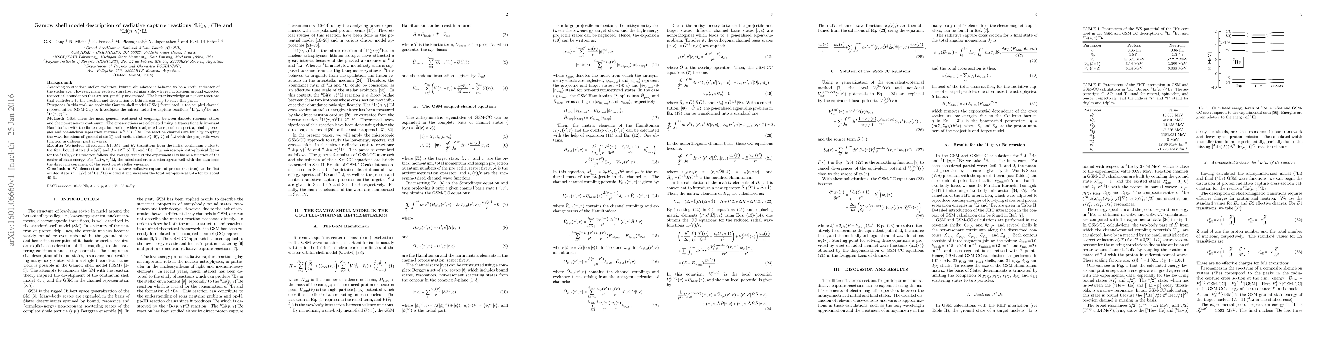 This paper applies the Gamow shell model to study the radiative capture reactions $^6$Li$(p,\gamma)$$^7$Be and $^6$Li$(n,\gamma)$$^7$Li, aiming to better understand lithium abundance fluctuations in evolved stars. The study finds that the $s$-wave capture to the first excited state in $^7$Be and $^7$Li significantly increases the astrophysical $S$-factor by about 40%.