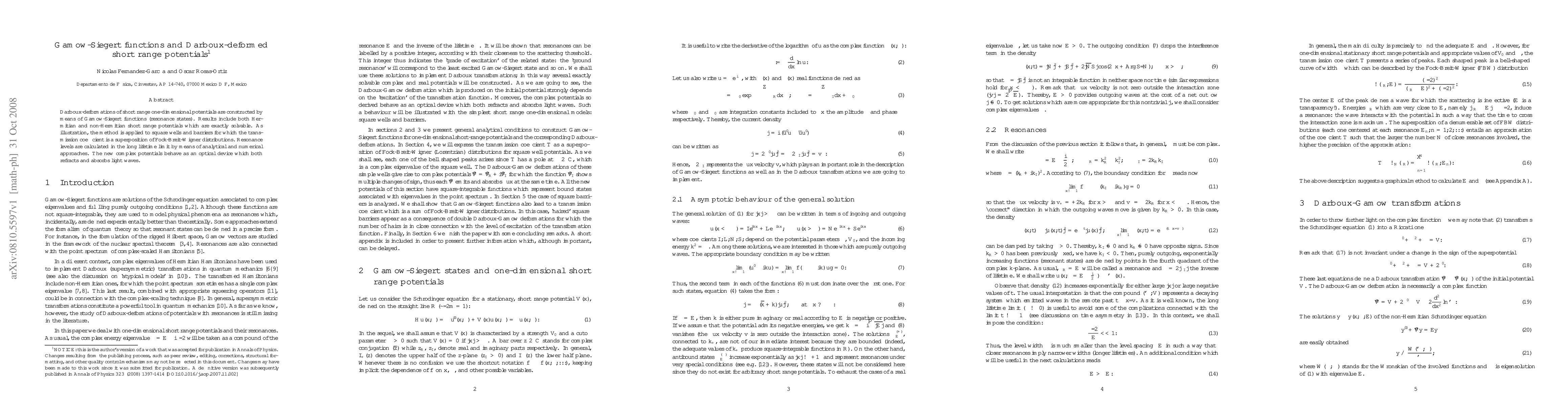 Researchers develop a method to create exactly solvable one-dimensional potentials with both refractive and absorptive properties, using Gamow-Siegert functions to construct Darboux-deformed short range potentials.