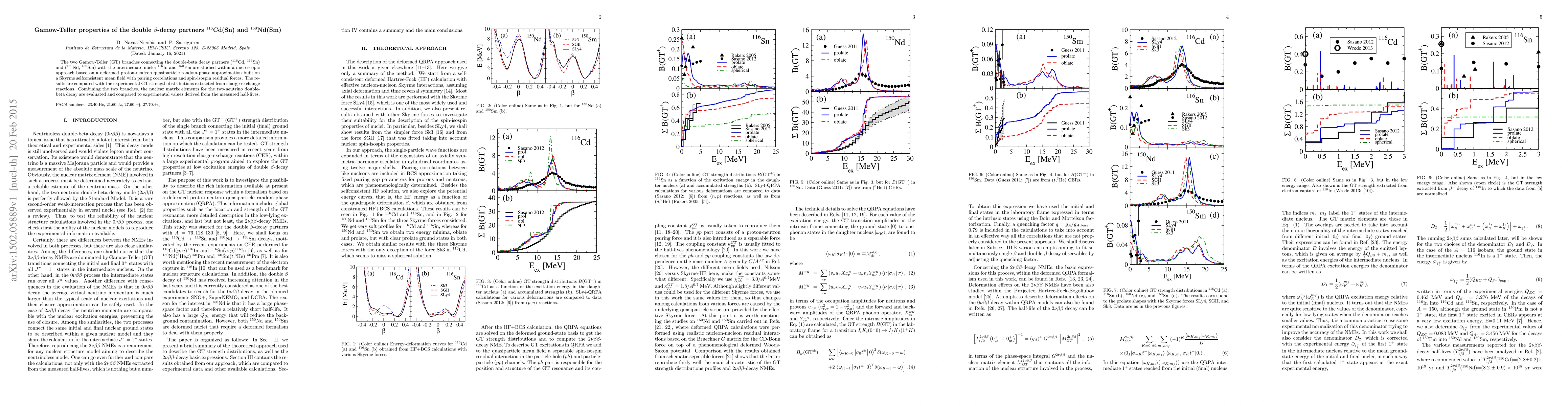 This paper investigates the Gamow-Teller branches of the double beta decay partners 116Cd(Sn) and 150Nd(Sm) using a microscopic approach based on a deformed proton-neutron quasiparticle model. The study compares theoretical results with experimental GT strength distributions and evaluates nuclear matrix elements for two-neutrino double-beta decay, comparing them to experimental half-life data.