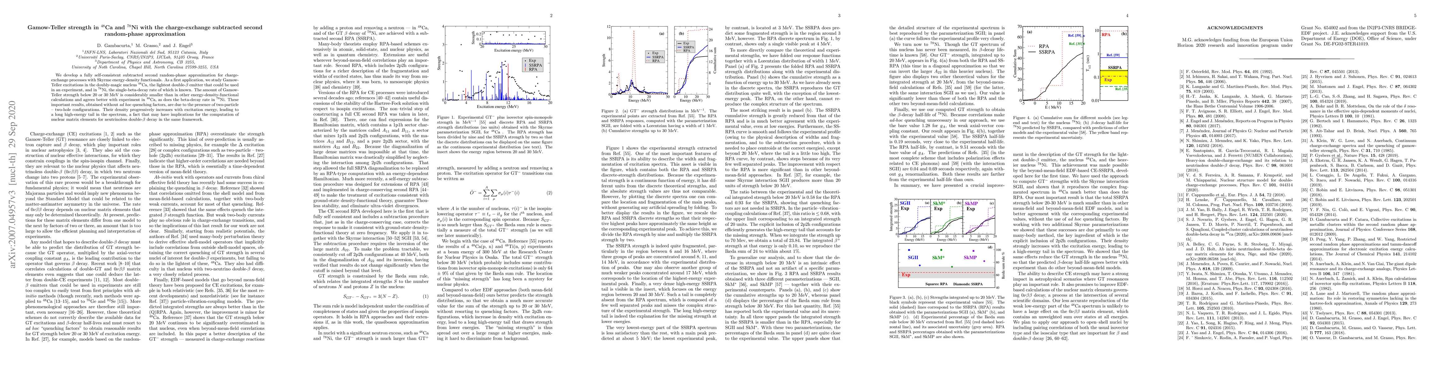 This paper develops a self-consistent subtracted second random-phase approximation for charge-exchange processes, applying it to study Gamow-Teller excitations in $^{48}$Ca and $^{78}$Ni, finding smaller Gamow-Teller strength and better agreement with experimental data compared to other calculations.