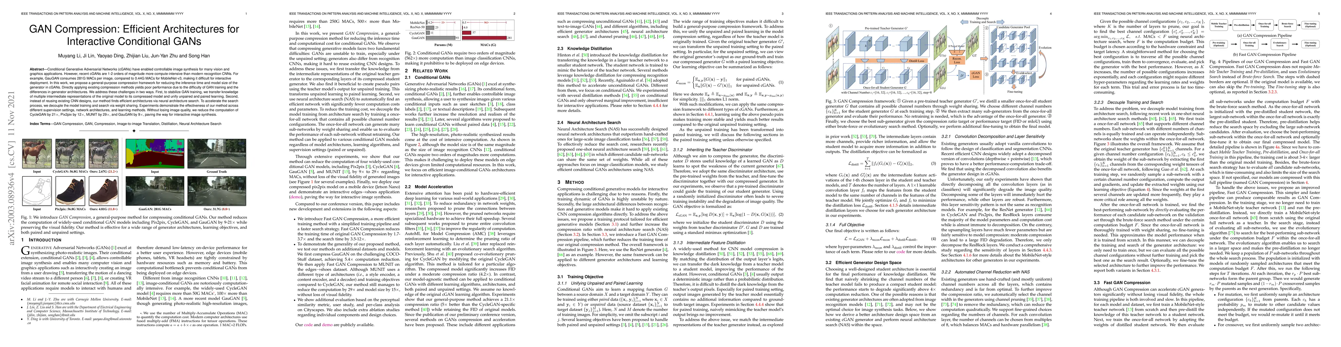 A new compression framework for conditional Generative Adversarial Networks (cGANs) reduces inference time and model size without compromising image quality, making interactive deployment possible.