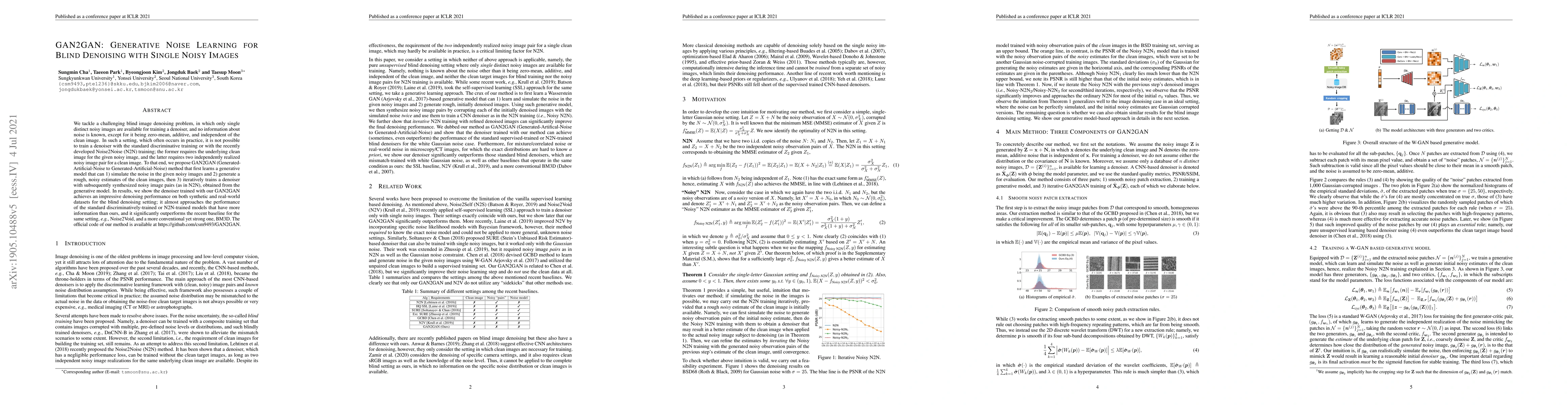 A new method called GAN2GAN improves blind image denoising performance by learning to simulate noise and generate noisy estimates of clean images, allowing it to outperform existing methods with less information.