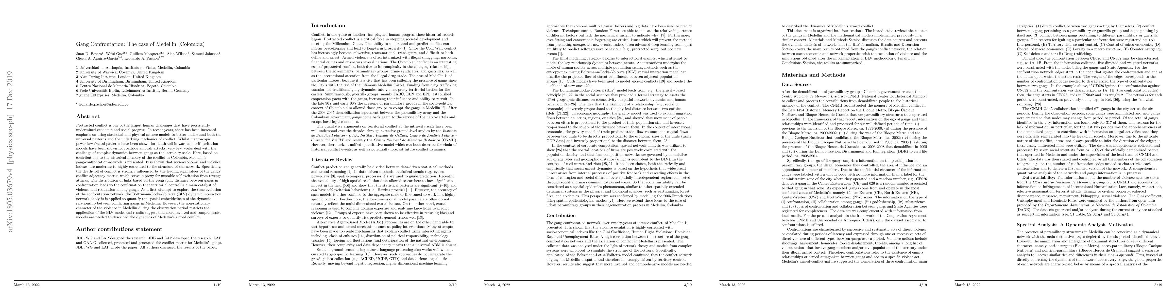 Protracted conflict is one of the largest human challenges that have persistently undermined economic and social progress. In recent years, there has been increased emphasis on using statistical and physical science models to better understand both the universal patterns and the underlying mechanics of conflict. Whilst macroscopic power-law fractal patterns have been shown for death-toll in wars and self-excitation models have been shown for roadside ambush attacks, very few works deal with the challenge of complex dynamics between gangs at the intra-city scale. Here, based on contributions to the historical memory of the conflict in Colombia, Medellin's gang-confrontation-network is presented. It is shown that socio-economic and violence indexes are moderate to highly correlated to the structure of the network. Specifically, the death-toll of conflict is strongly influenced by the leading eigenvalues of the gangs' conflict adjacency matrix, which serves a proxy for unstable self-excitation from revenge attacks. The distribution of links based on the geographic distance between gangs in confrontation leads to the confirmation that territorial control is a main catalyst of violence and retaliation among gangs. Additionally, the Boltzmann-Lotka-Volterra (BLV) dynamic interaction network analysis is applied to quantify the spatial embeddedness of the dynamic relationship between conflicting gangs in Medellin, results suggest that more involved and comprehensive models are needed to described the dynamics of Medellin's armed conflict.